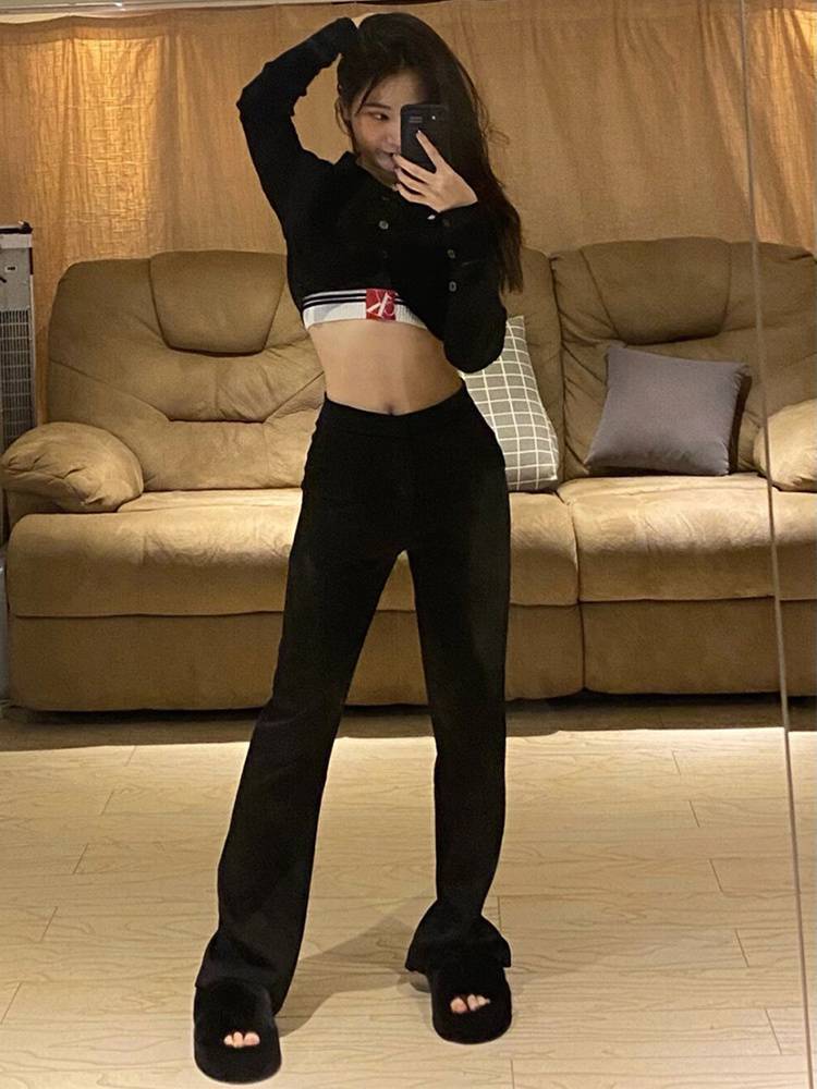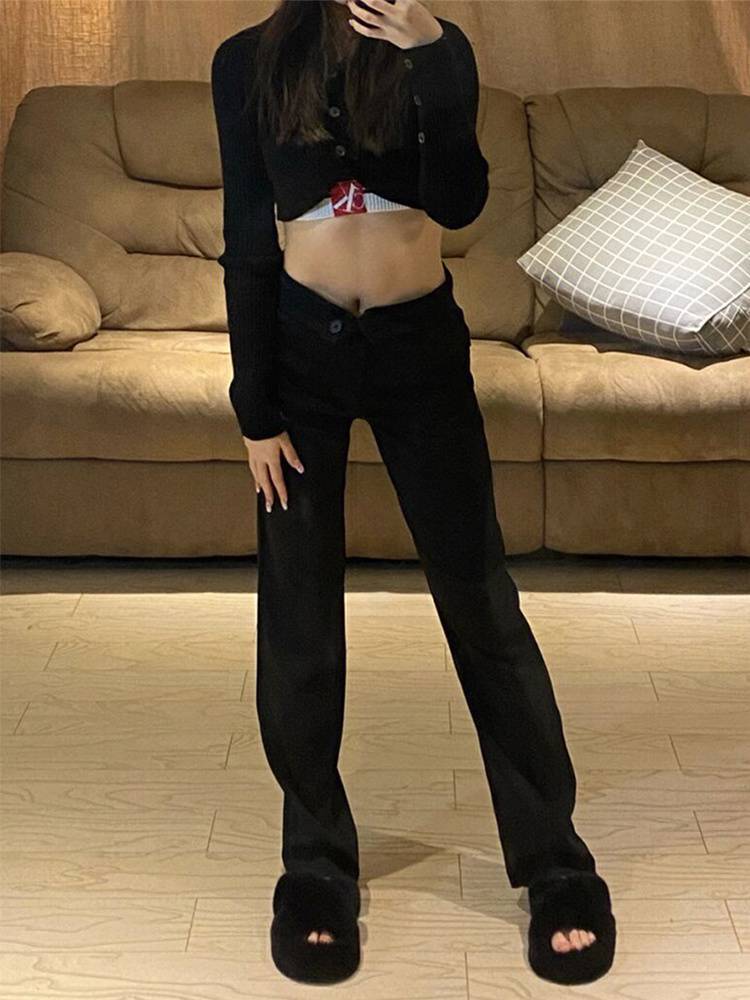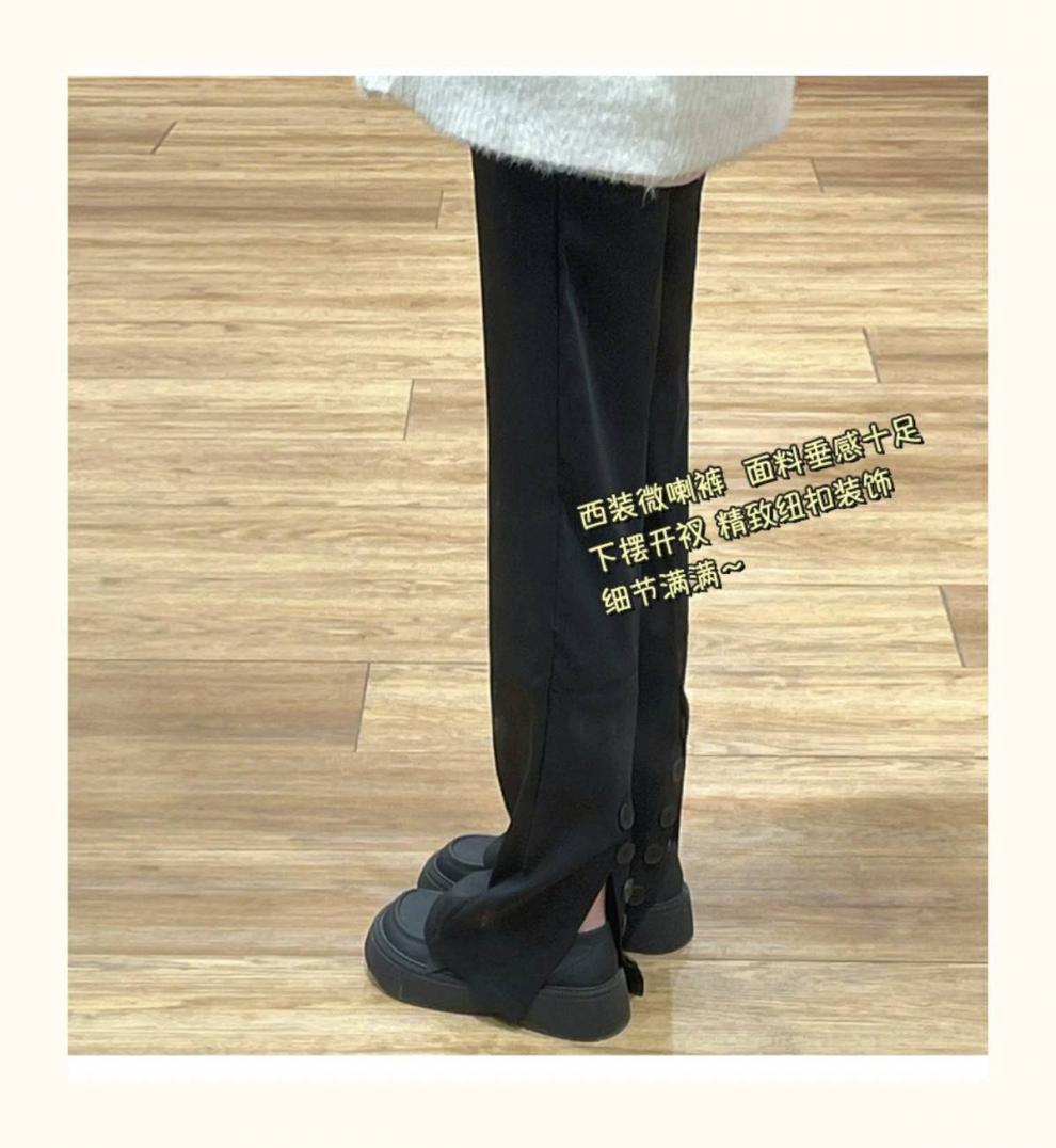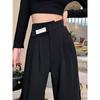 Otoño Nuevo estilo traje ceñido para mujeres gorditas pantalones de pierna ancha chica gordita pantalones casuales rectos negros para mujer nicho
