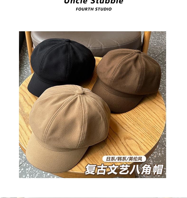 Boina de Primavera y Otoño para Niña Estilo Coreano Combinable Rostro Pequeño Gorra Octogonal Literaria Retro Gorra de Repartidor Sombrero de Pintor Japonés