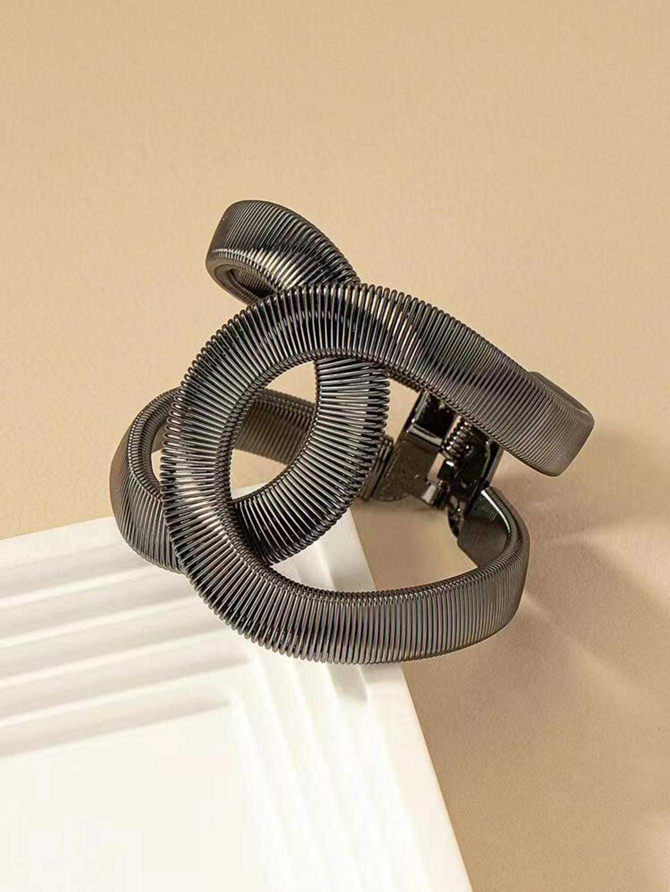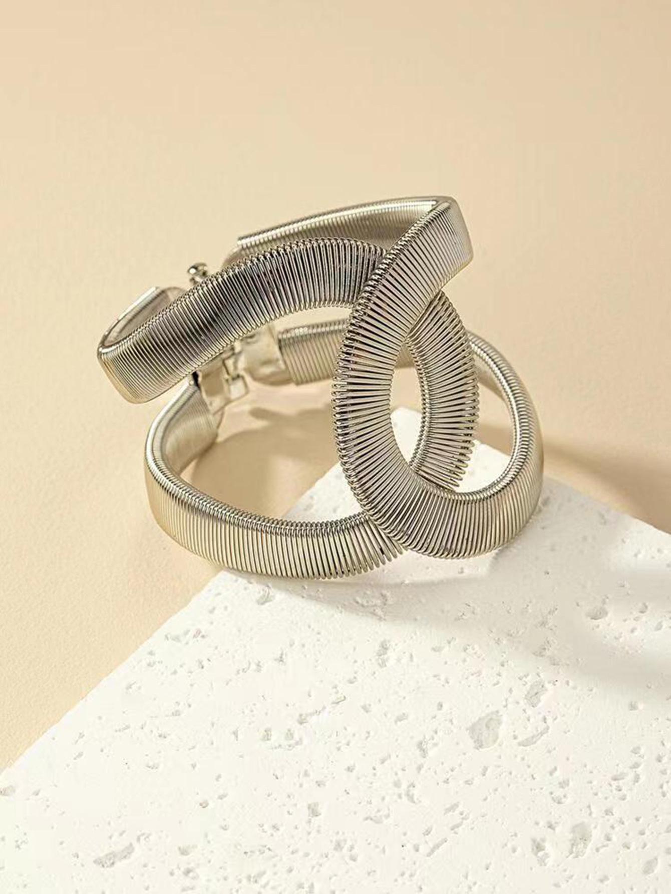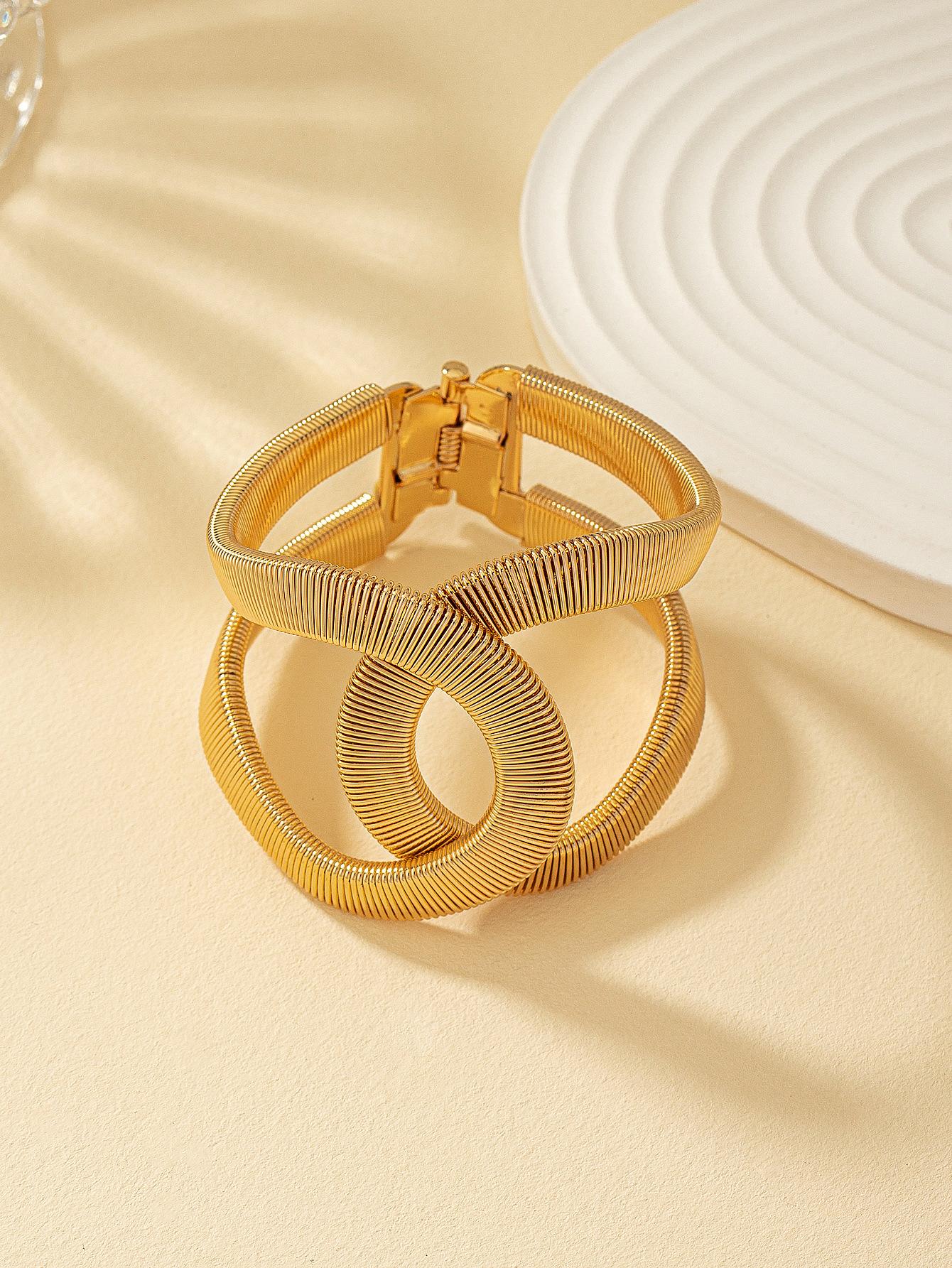 Suministro transfronterizo de pulseras huecas de resorte europeas y americanas, pulseras abiertas ajustables elásticas de metal para hombres y mujeres
