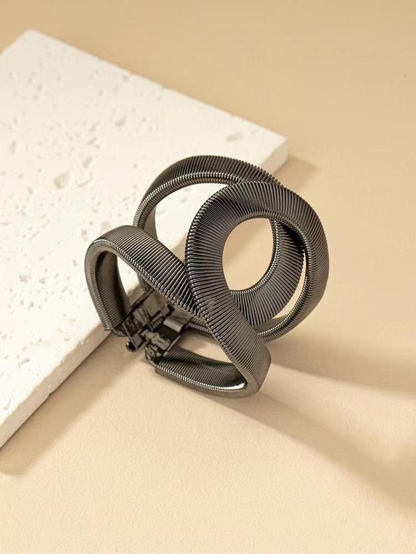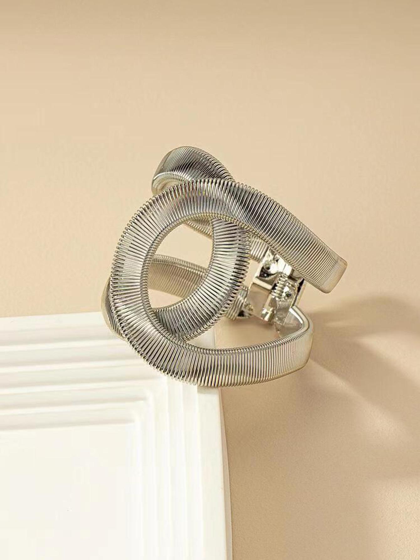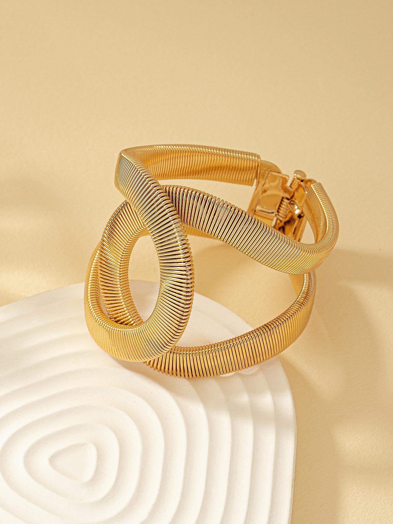 Suministro transfronterizo de pulseras huecas de resorte europeas y americanas, pulseras abiertas ajustables elásticas de metal para hombres y mujeres
