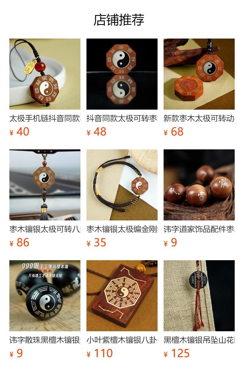 Cadena para Teléfono Móvil Tai Chi Estilo Similar Douyin Madera de Azufaifo Incrustada en Plata Colgante Pequeño Bagua del Primer Día Joyería Taoísta Colgante Venta al por Mayor