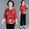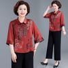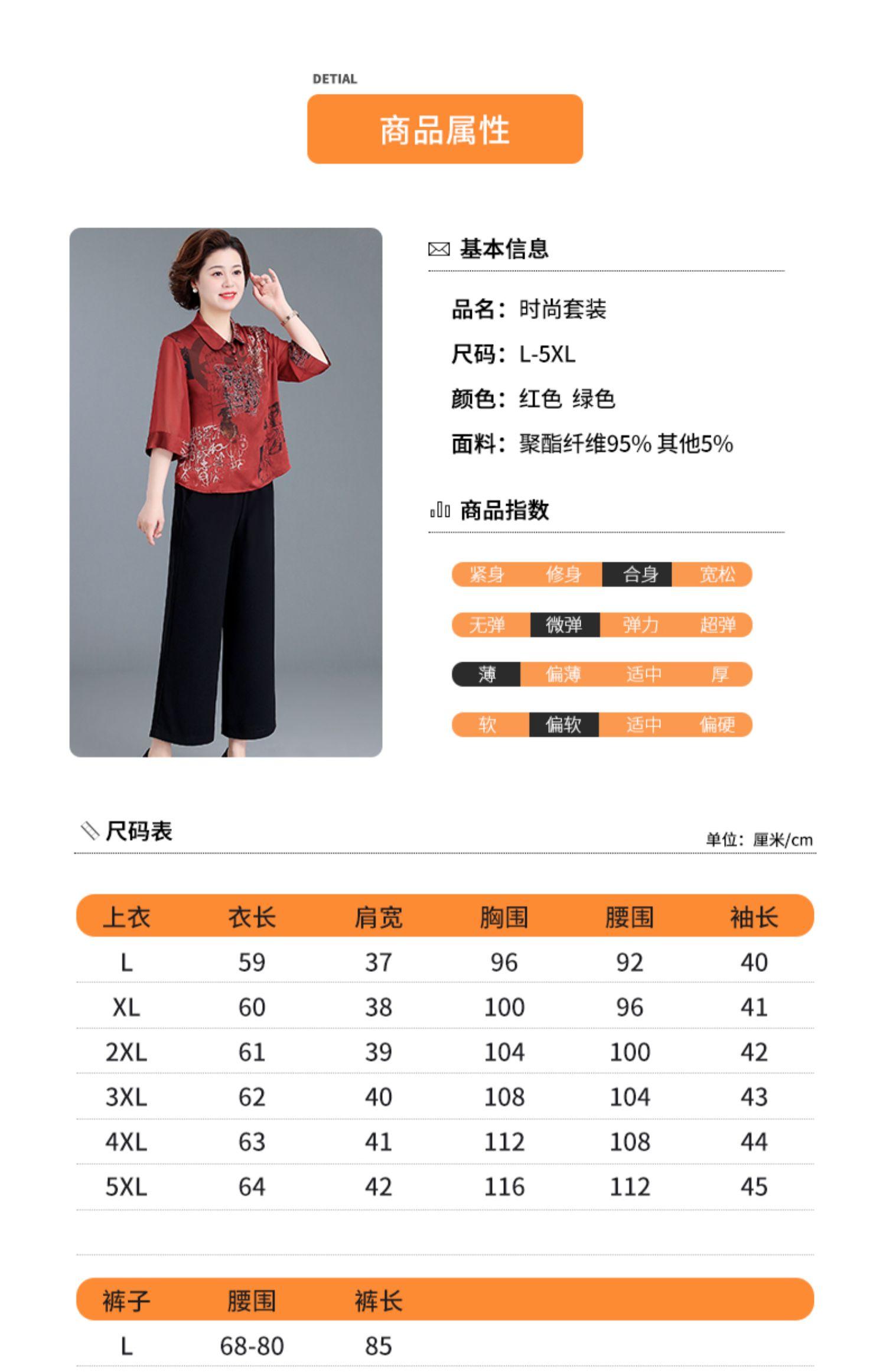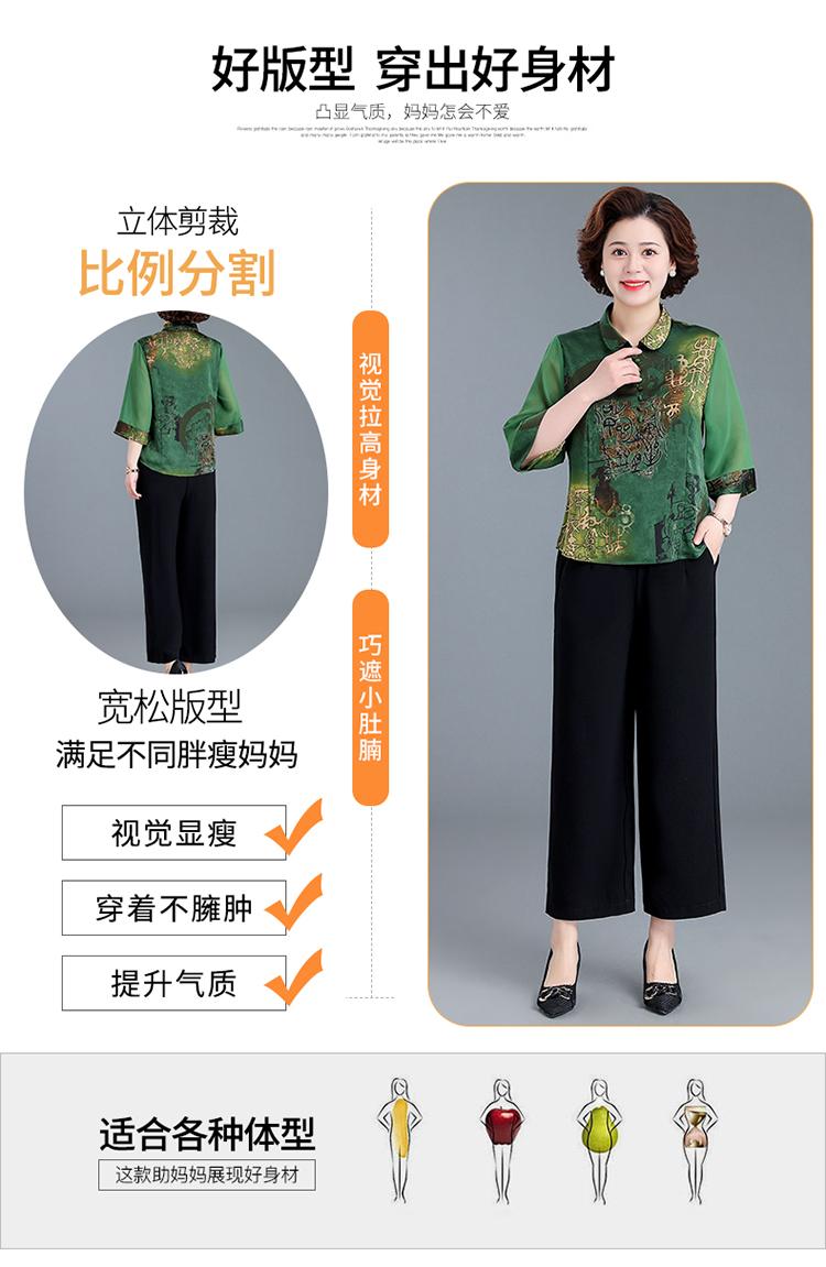 Vestido de Verano para Madre de Mediana Edad Top de Manga Siete Cuartos Estilo Occidental Vestido de Abuela Primavera y Otoño Talla Grande Traje de Dos Piezas para Mujeres de Mediana Edad y Mayores