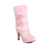 Botas de Mujer Botas Rosas Zapatos de Moda Botas de Tacón Alto Botas Mao Mao de Mujer Otoño e Invierno Talla Grande Botas de Mujer Zapatos Cálidos de Algodón