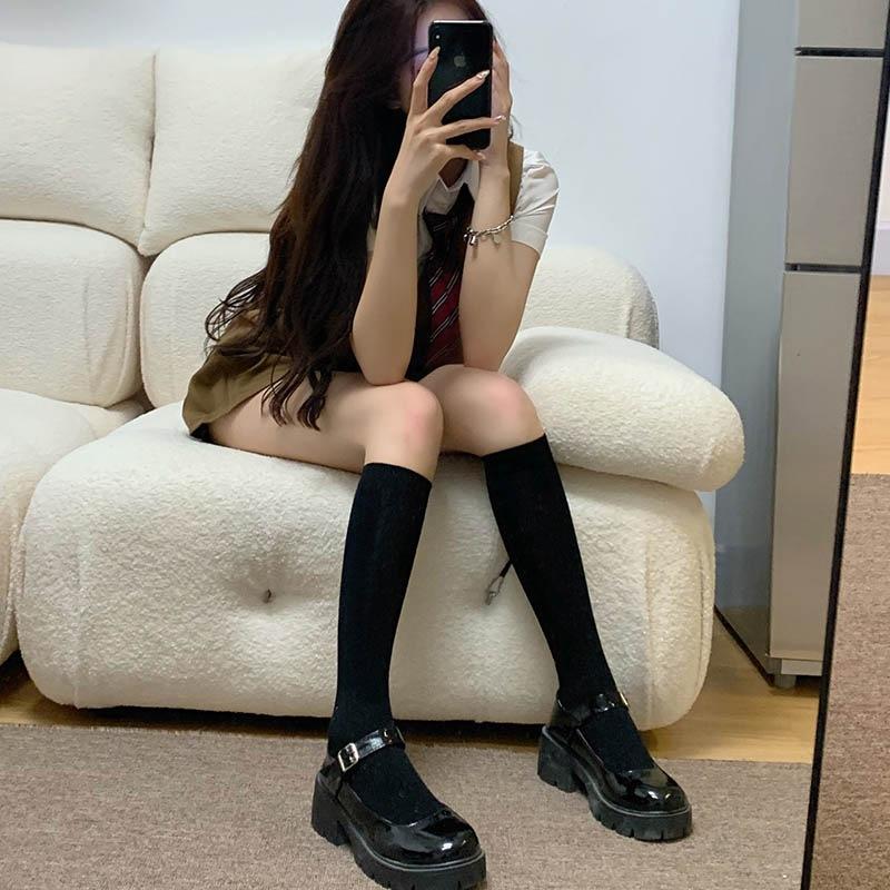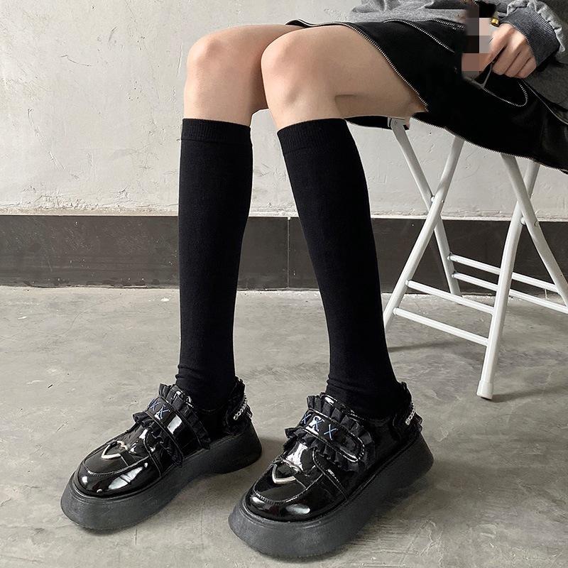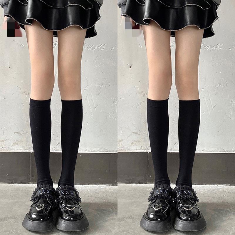 Calcetines de pantorrilla de color sólido de otoño e invierno de algodón JK Lolita estilo universitario vintage japonés ins dulces simples transpirables