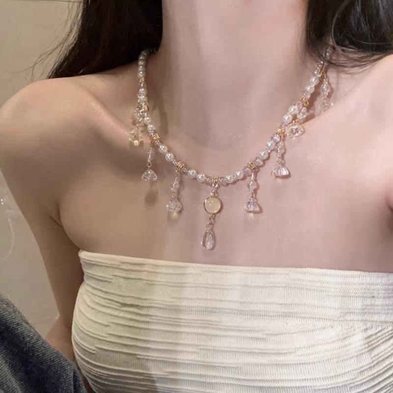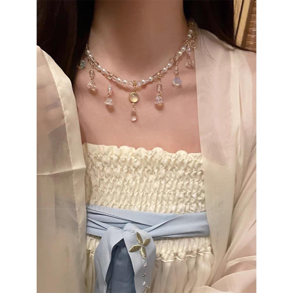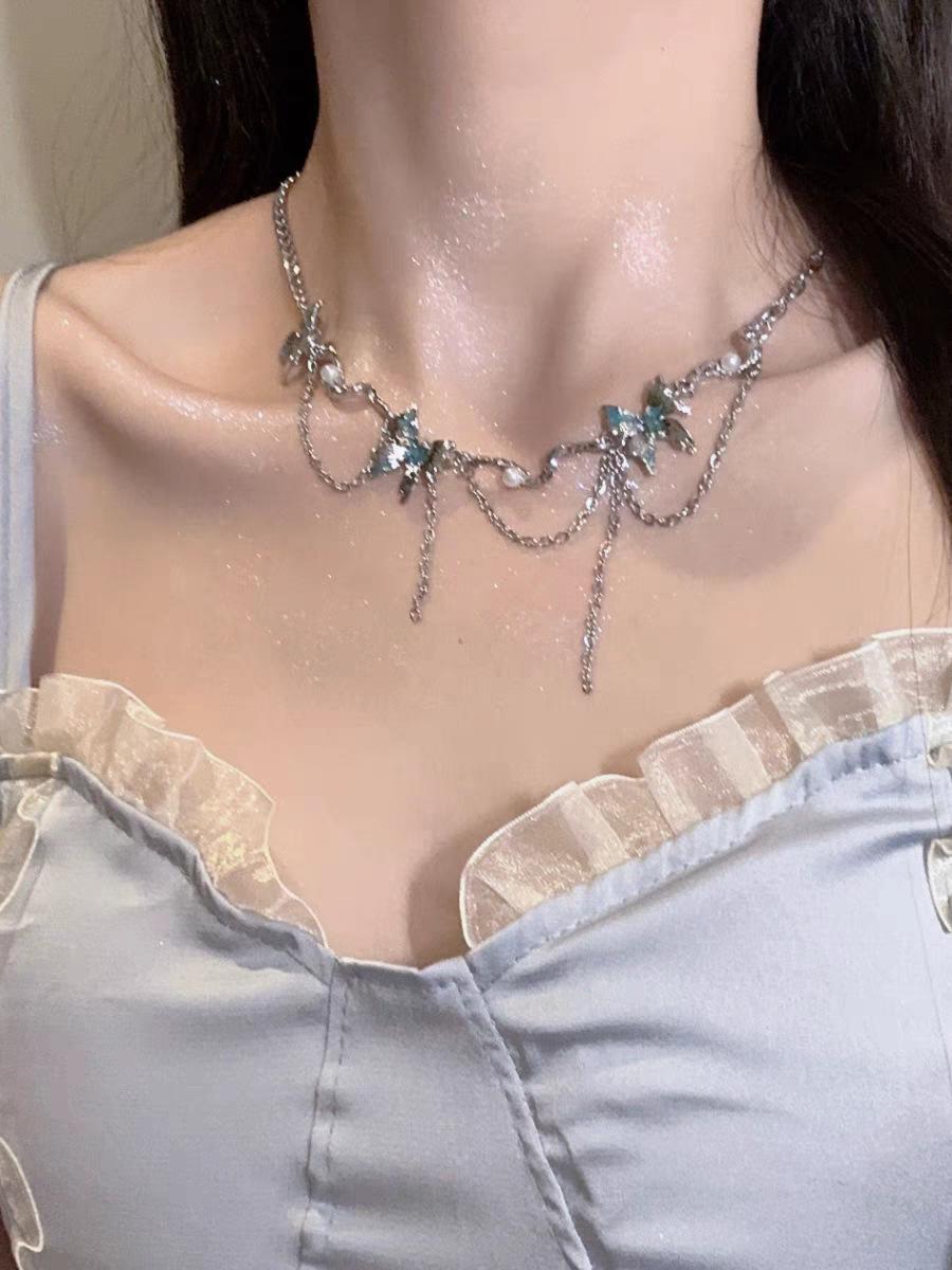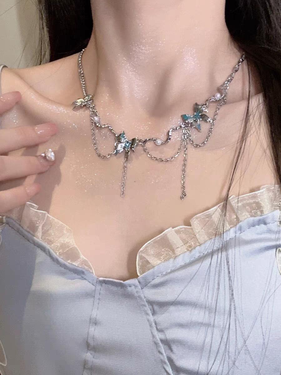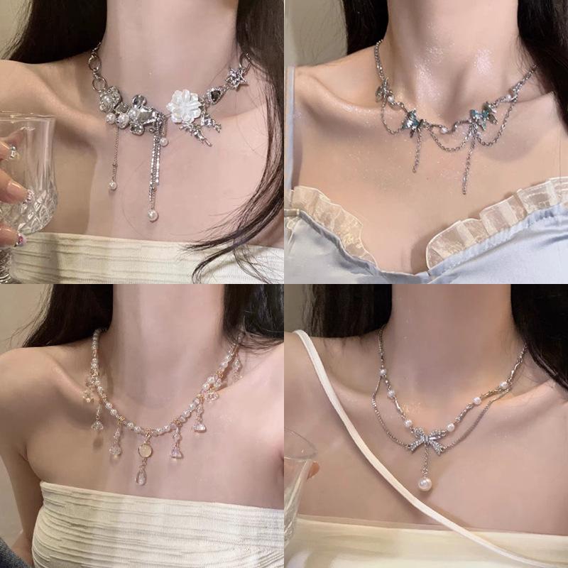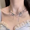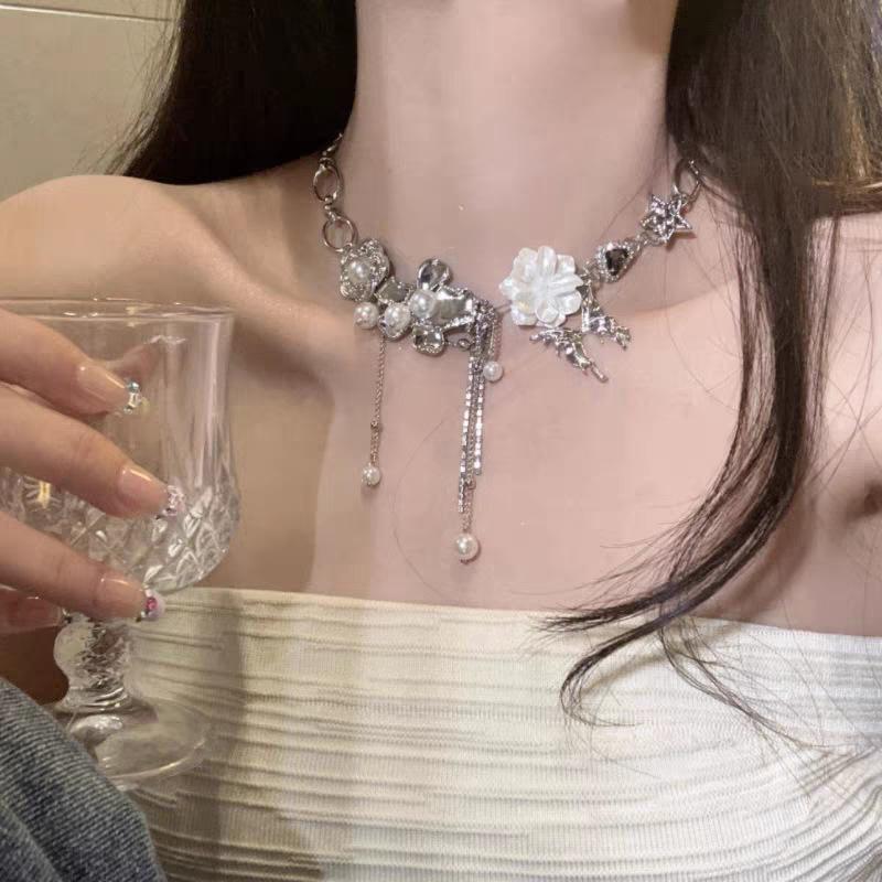 Collar ligero de lujo con borlas de flores, diseño de nicho, cadena de clavícula de metal pesado, estilo gargantilla retro
