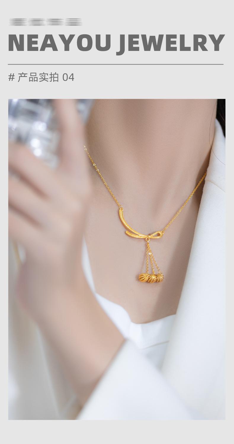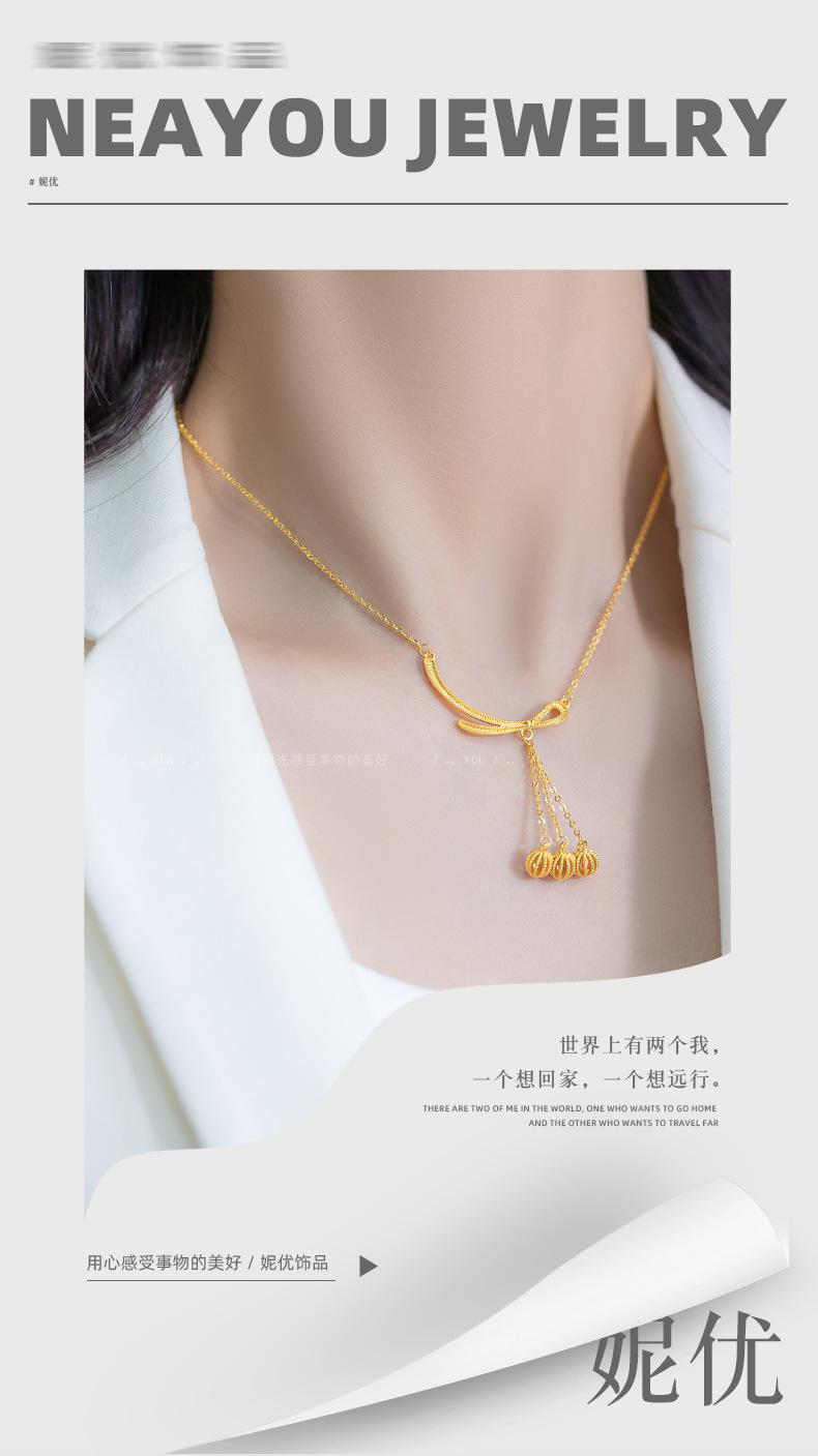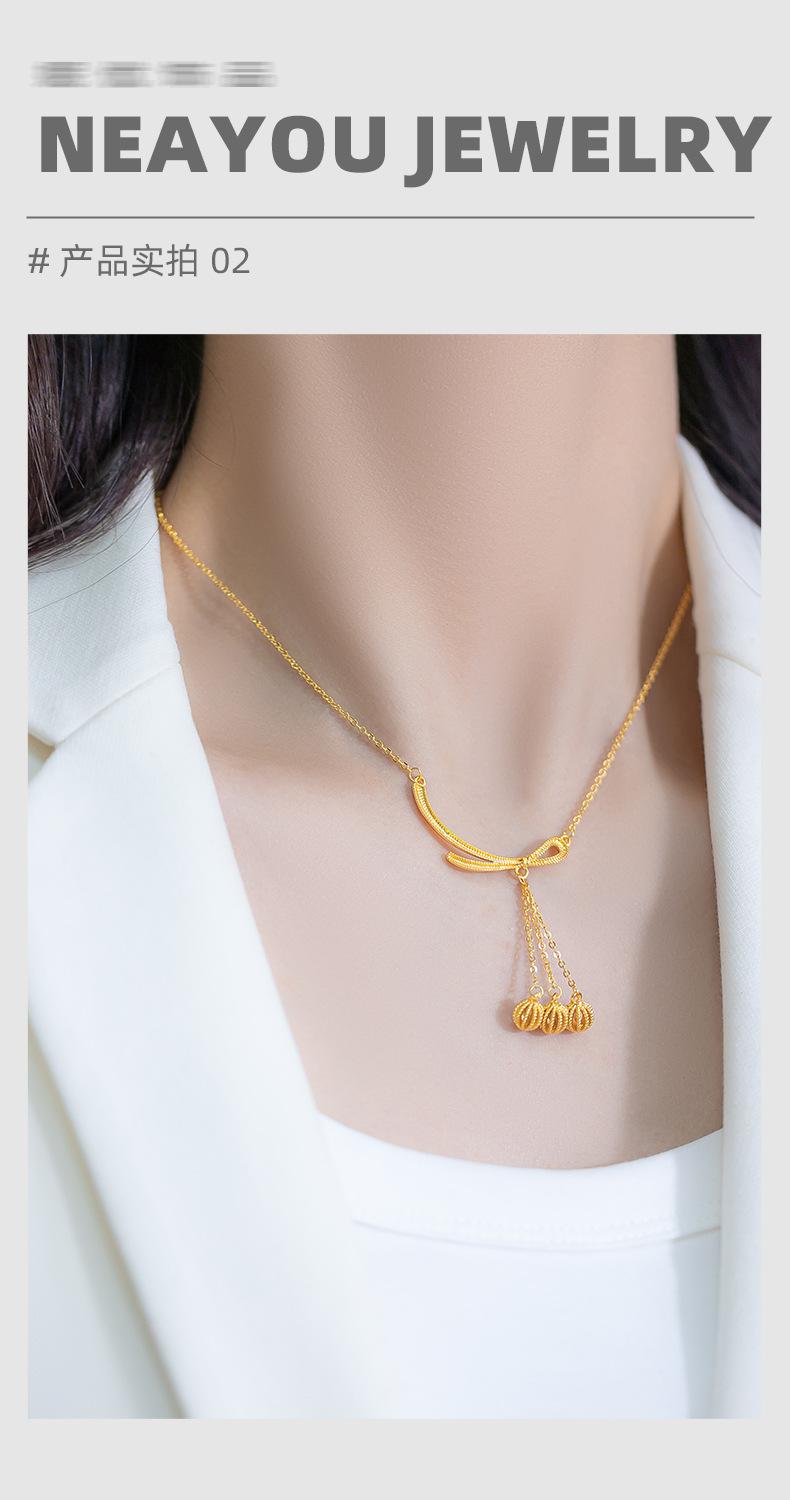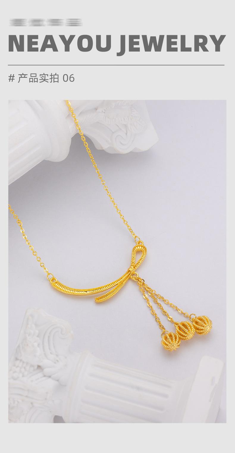 Collar de clavícula con bola de oro pequeña y borla chapada en oro de 24 quilates, nicho de temperamento dorado de alta calidad, cadena con lazo de princesa escapada