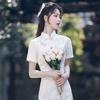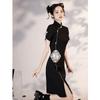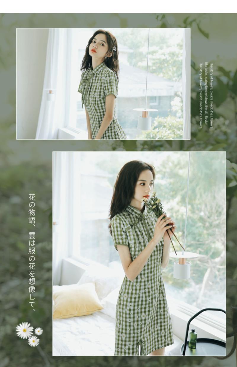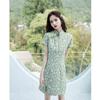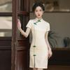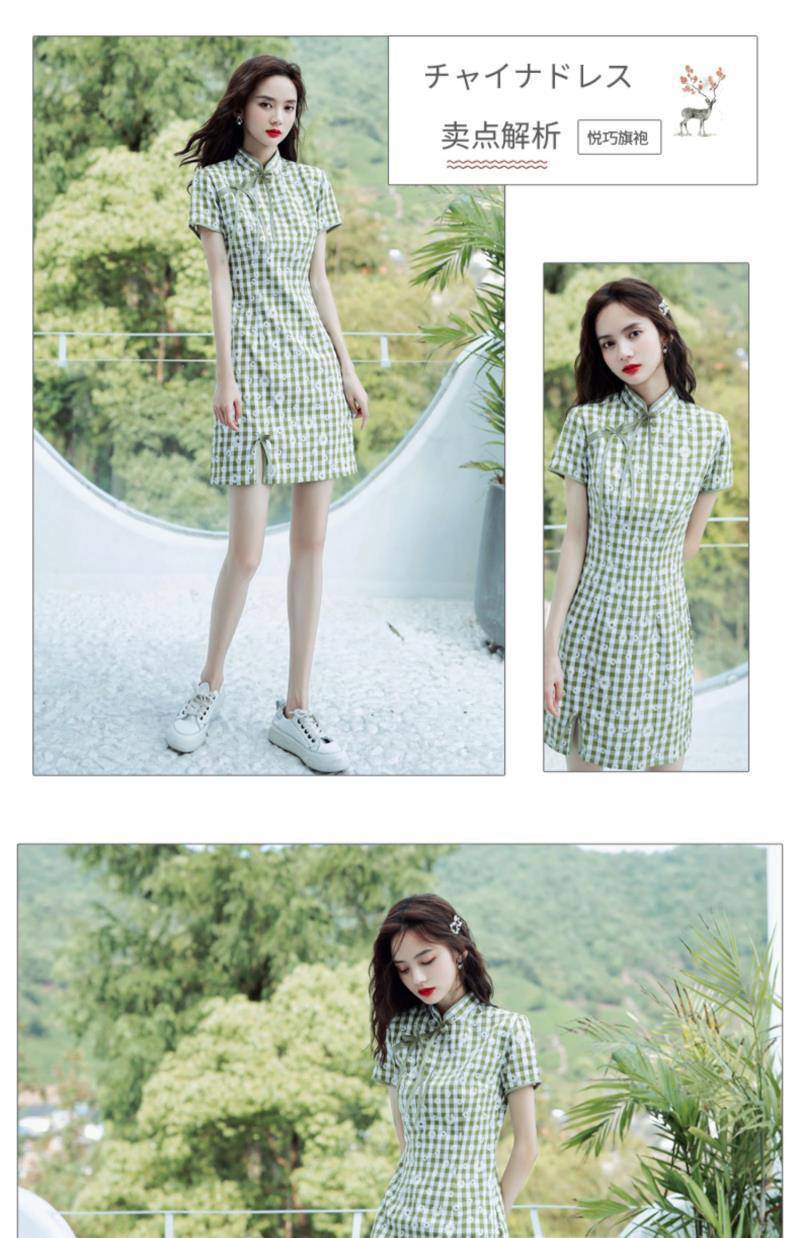 Vestido cheongsam corto ajustado retro modificado para mujer, nuevo y fresco, a cuadros pequeños, para chicas estudiantes, 2023