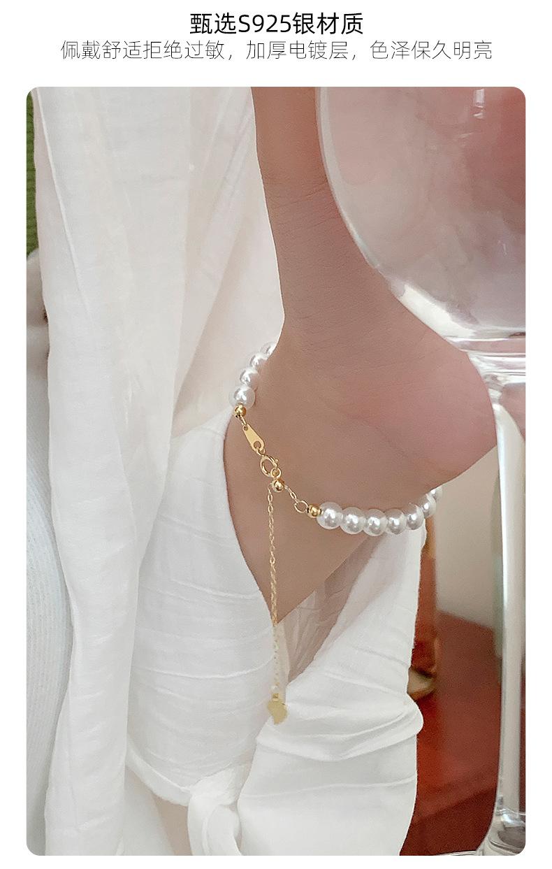 Pulsera de Perlas Elegante de Cápsulas de Mijo de Plata S925 para Mujer Nueva Versátil Nicho de Alta Gama Francesa Exquisita Pulsera Pulsera