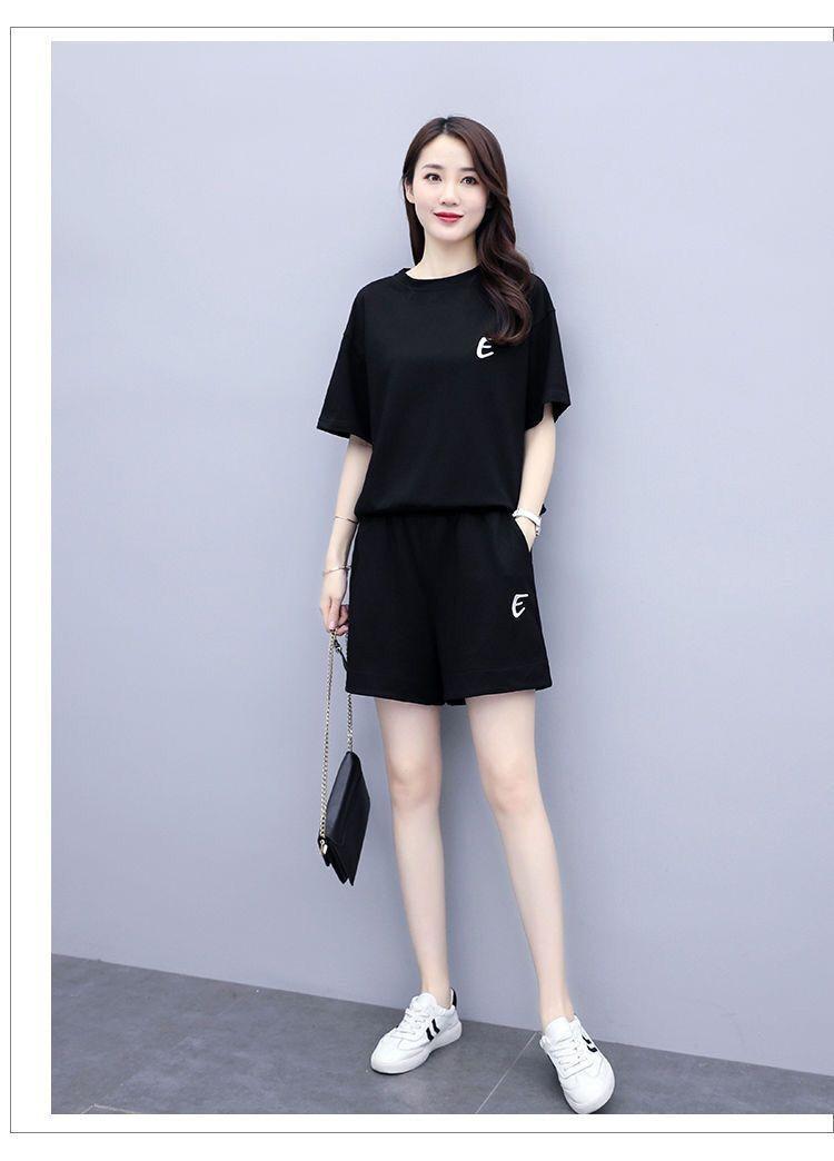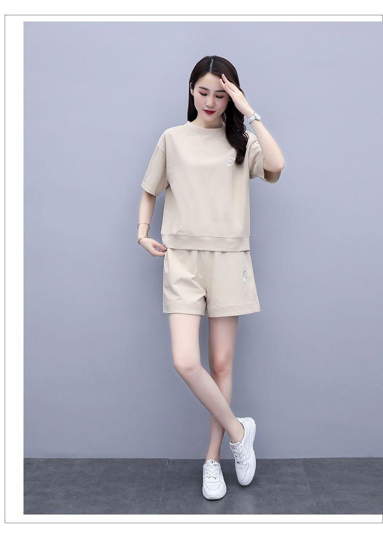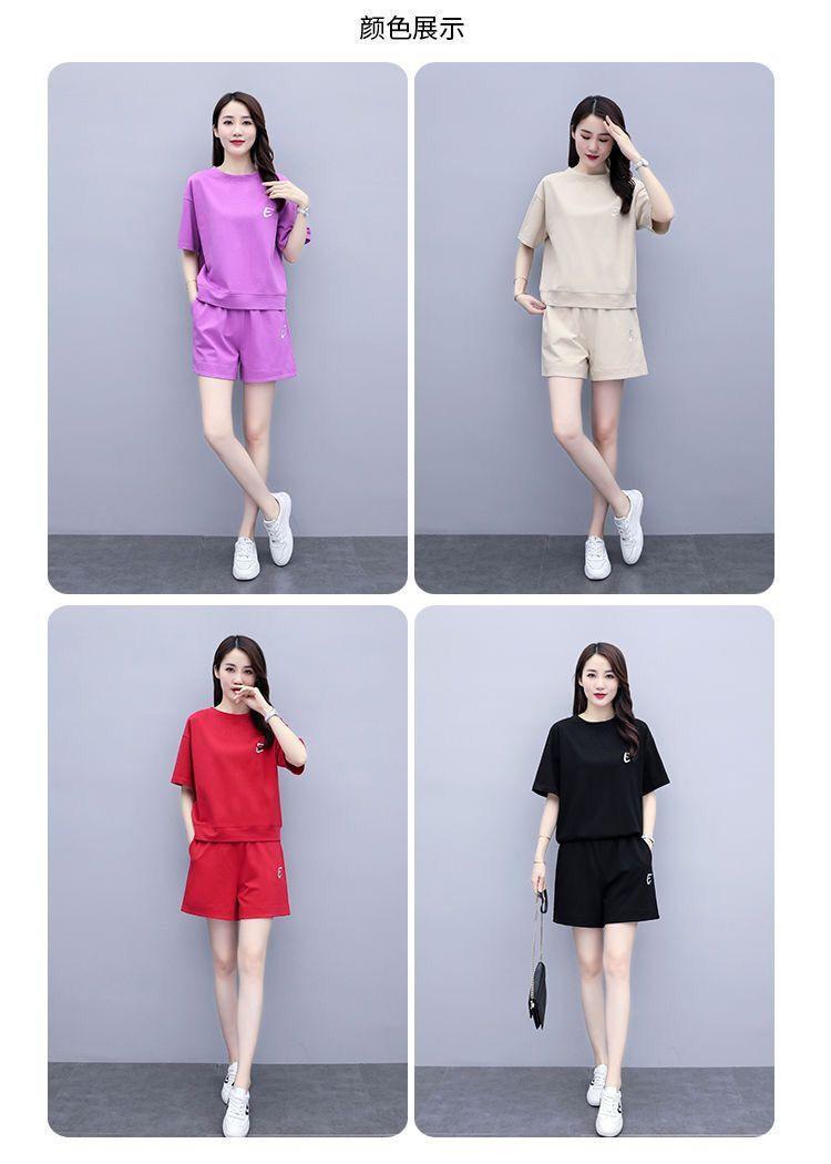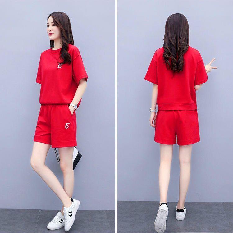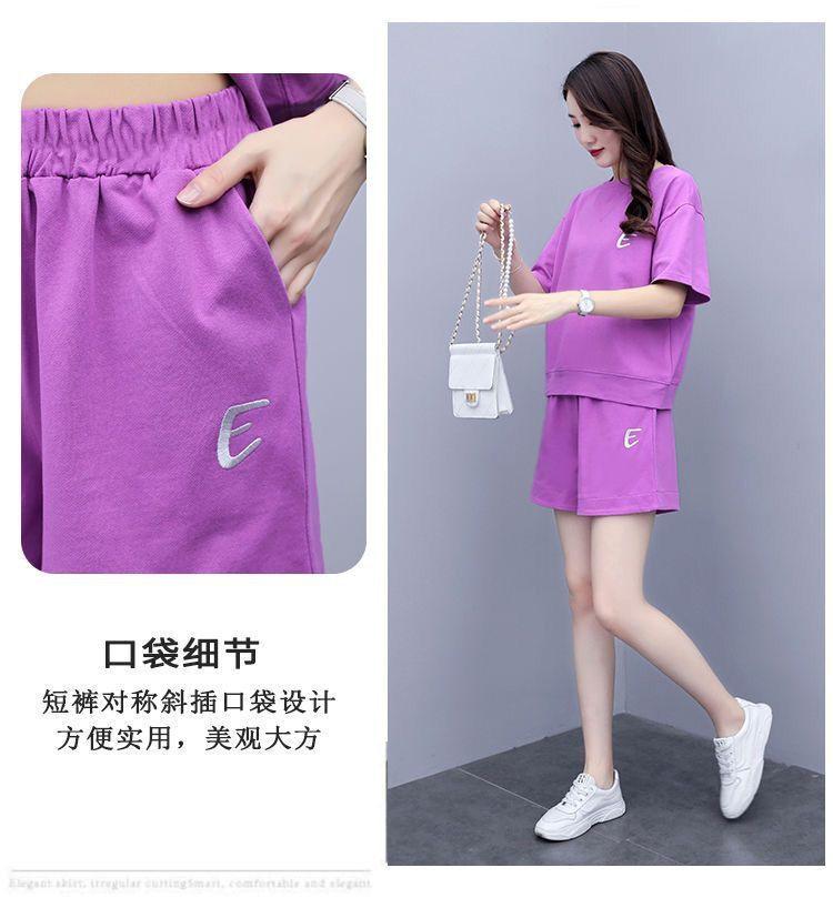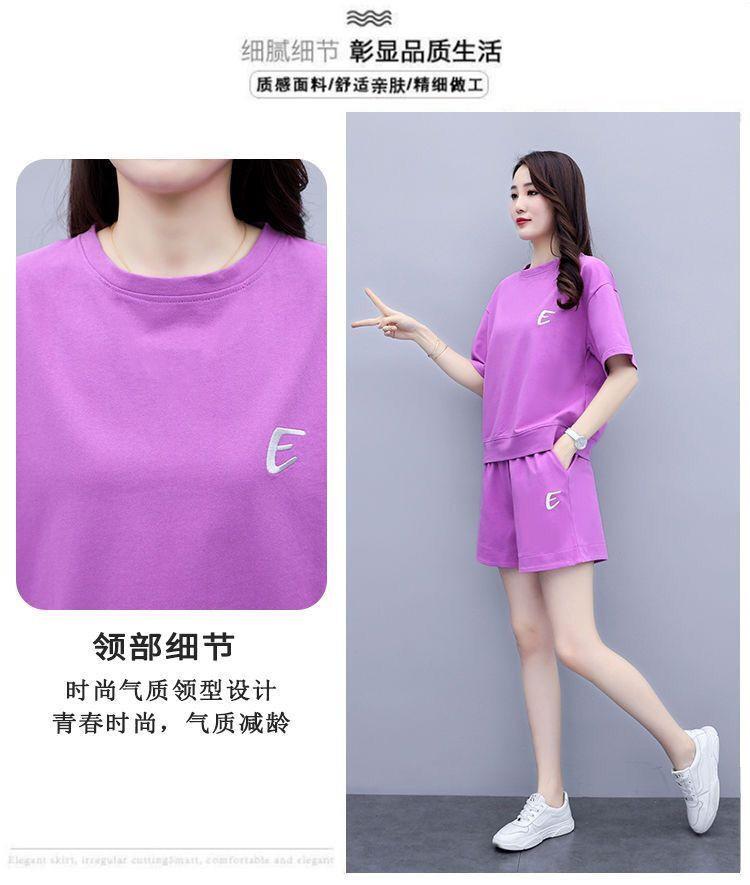 Traje deportivo bordado para mujer, de verano, de talla grande, holgado, nuevo, de moda, pantalones cortos de manga corta, conjunto informal de dos piezas