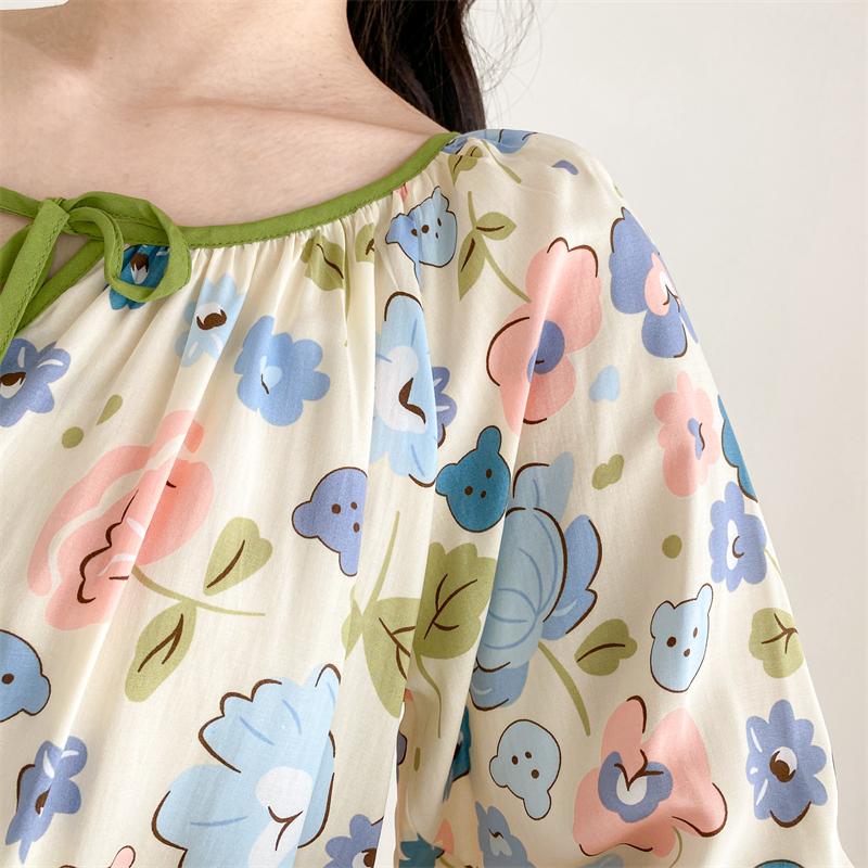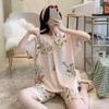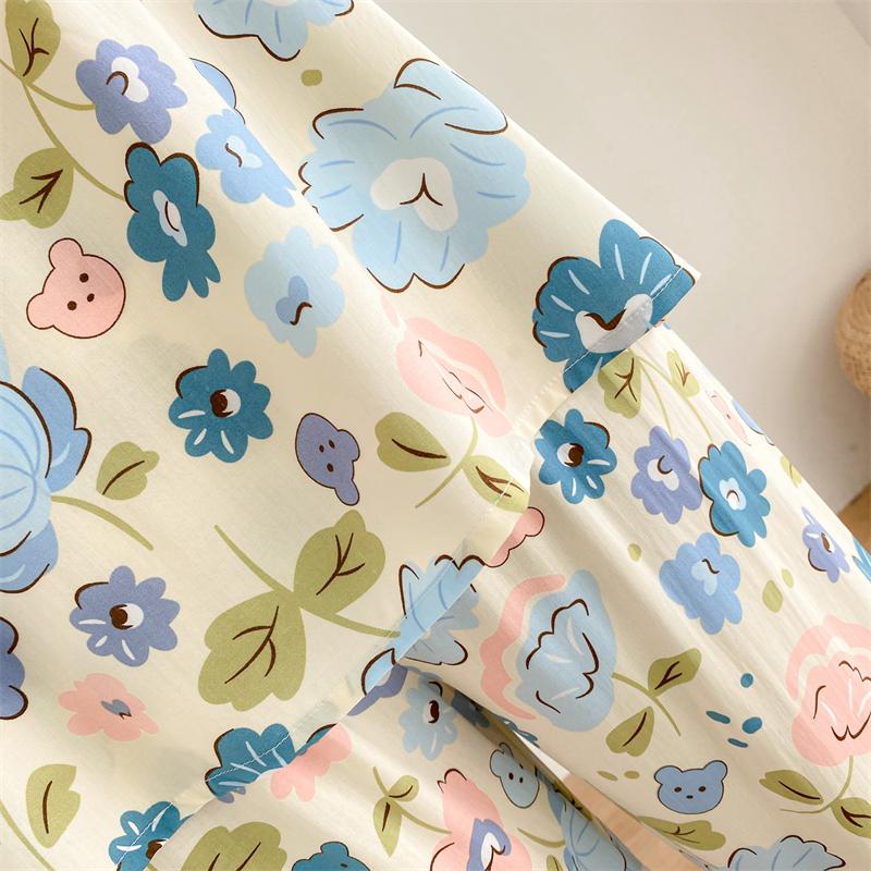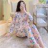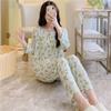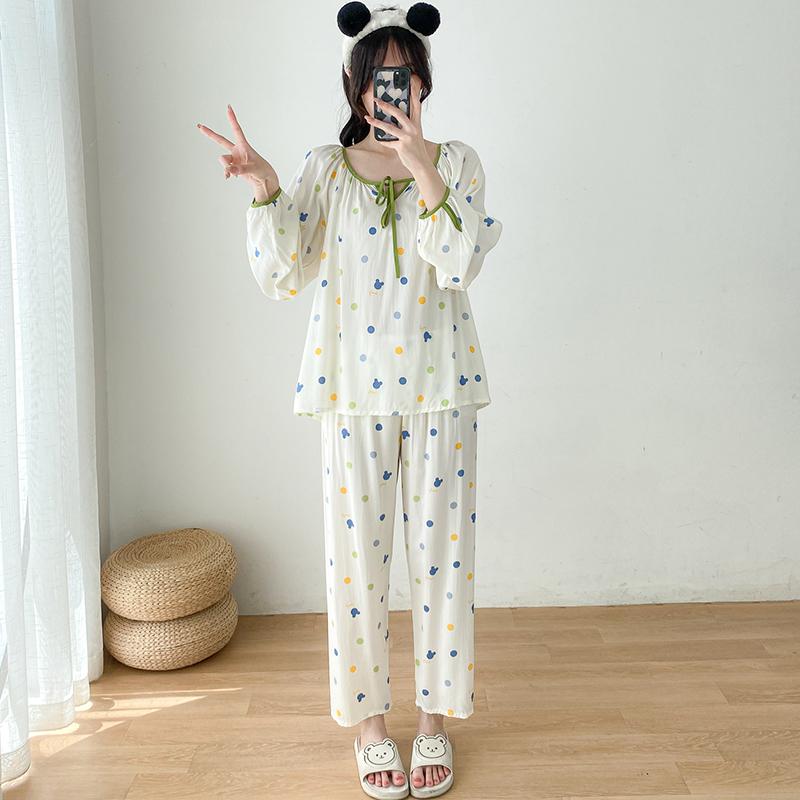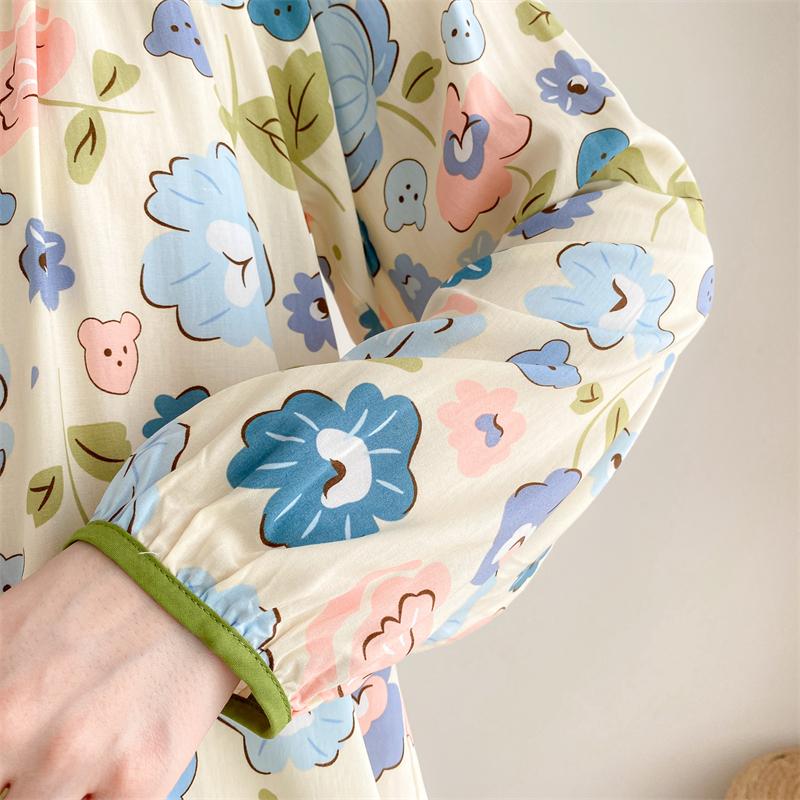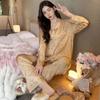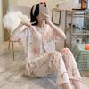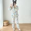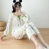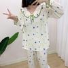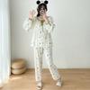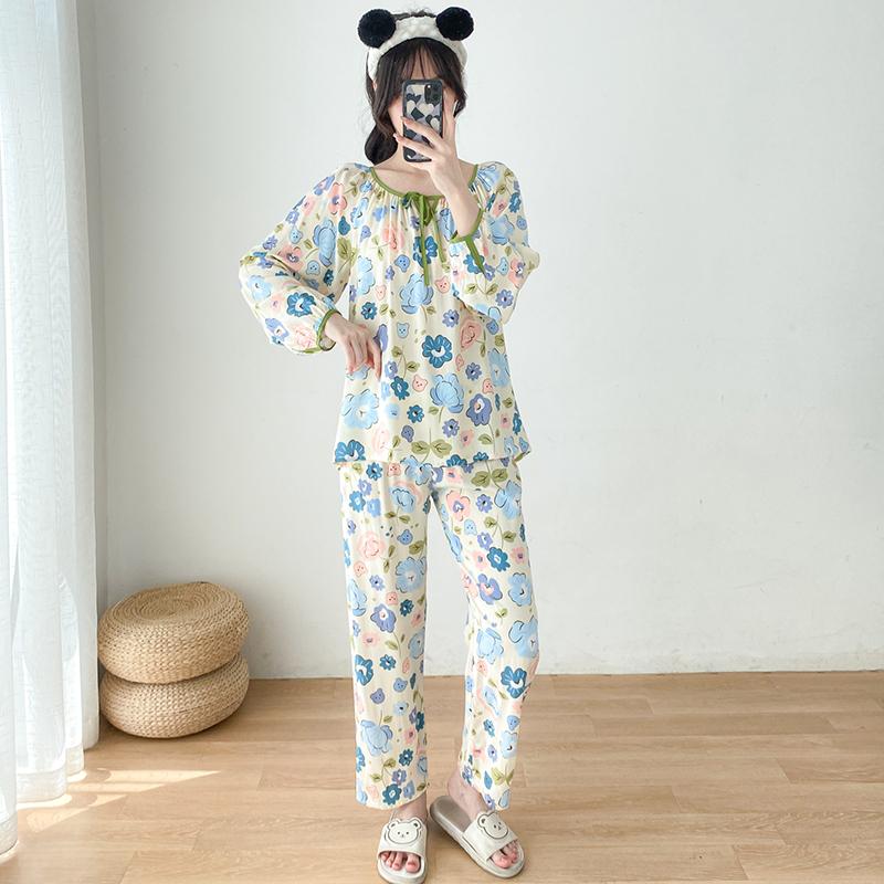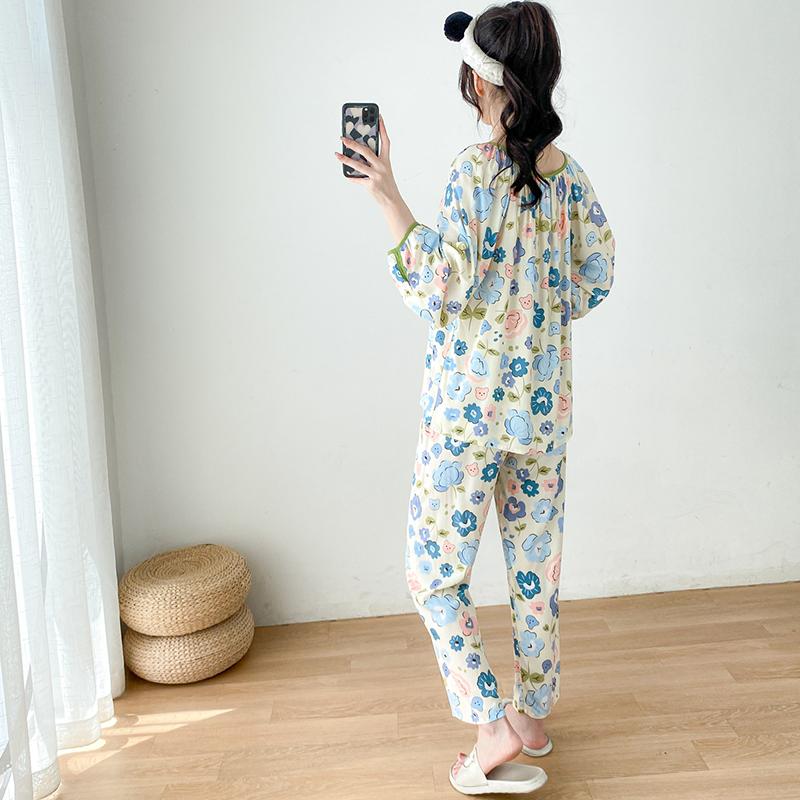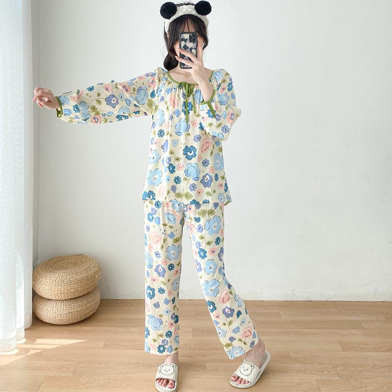 Pijama de seda de algodón de manga larga para mujer, ropa de verano fina y fresca con aire acondicionado, ropa para el hogar, traje sencillo de algodón y seda para estudiantes de estilo coreano.