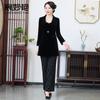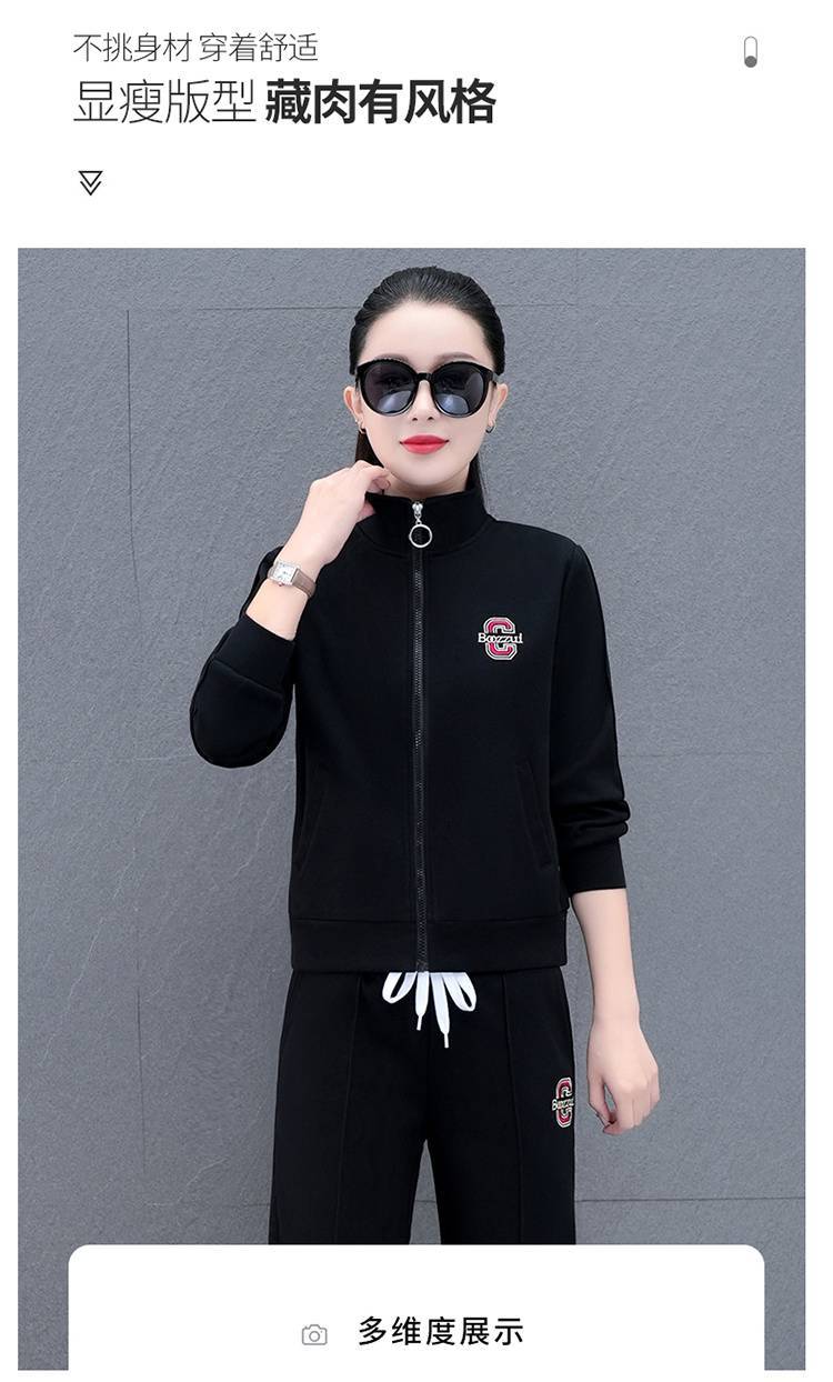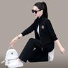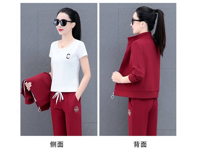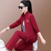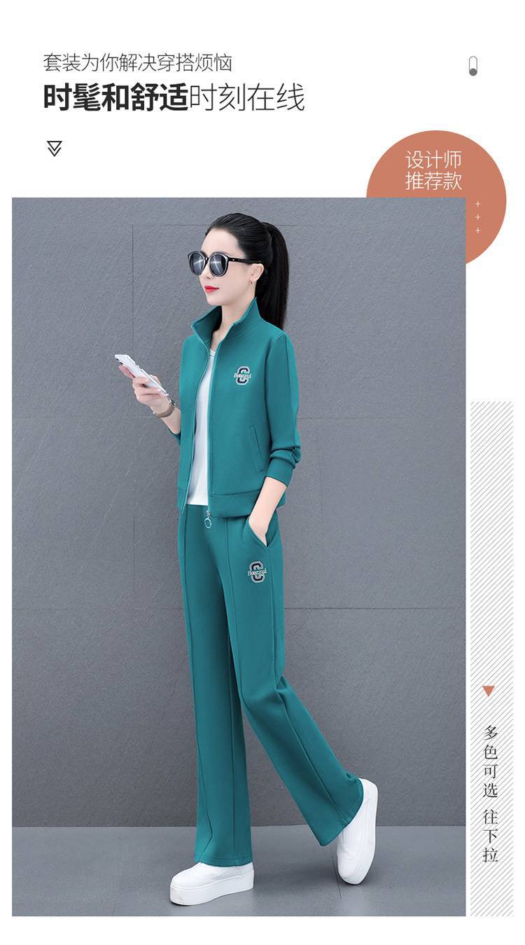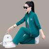 Traje deportivo para mujer, primavera y otoño 2023, nueva mamá, cuello alto reductor de edad, pantalones rectos sueltos, traje casual para correr de tres piezas