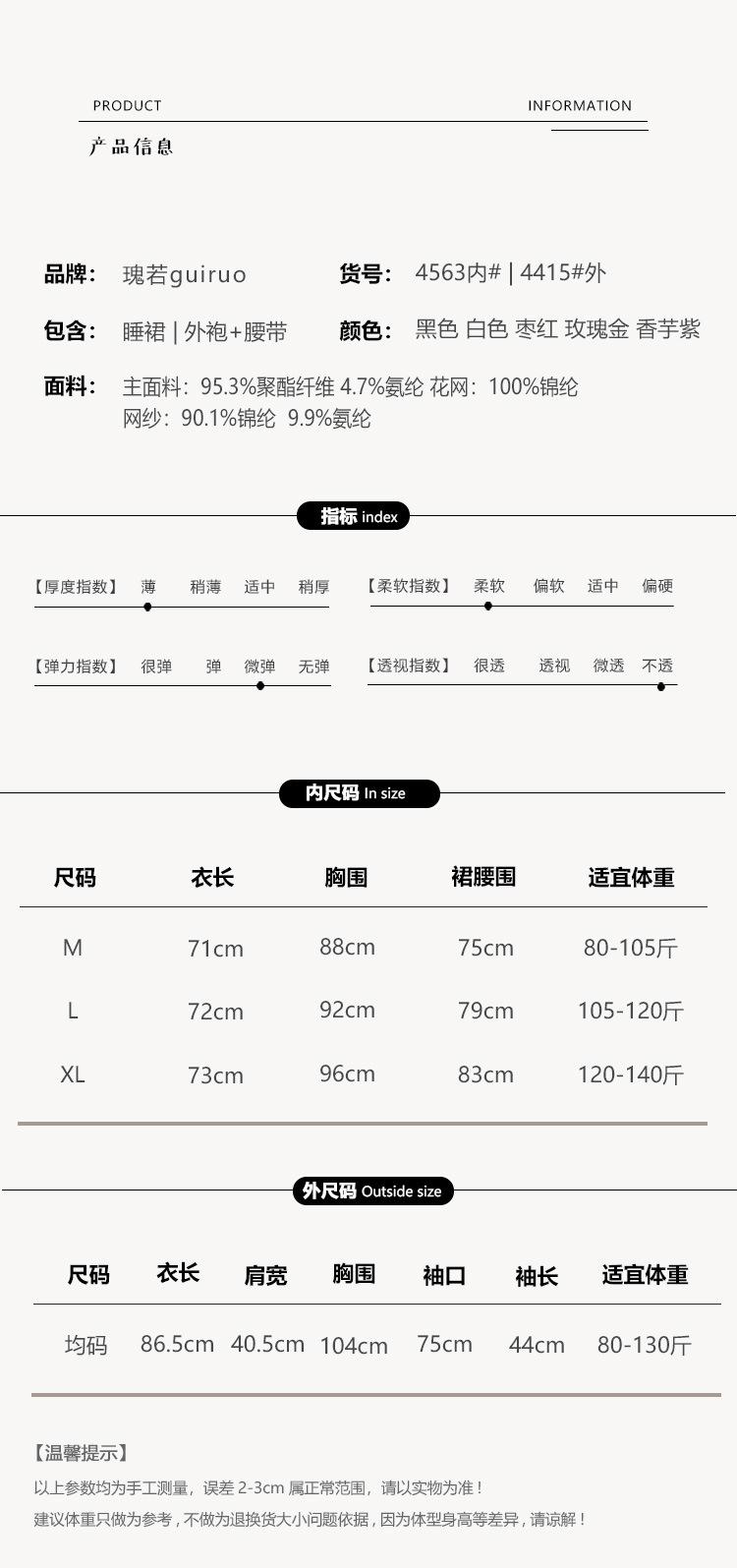 4563 black (nightgown), 4415 black (robe + belt), 4563 white (nightgown), 4415 white (robe + belt), 4563 maroo...