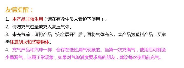 Debido a la naturaleza especial de este tipo de producto inflable de PVC, es inevitable que haya fugas y roturas. Sin embargo, también haremos los mayores esfuerzos para mejorar gradualmente y reducir la tasa de fugas para crear un mayor espacio de beneficio para ambas partes. Gracias