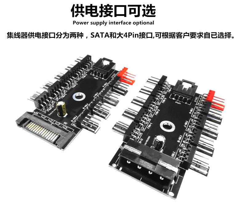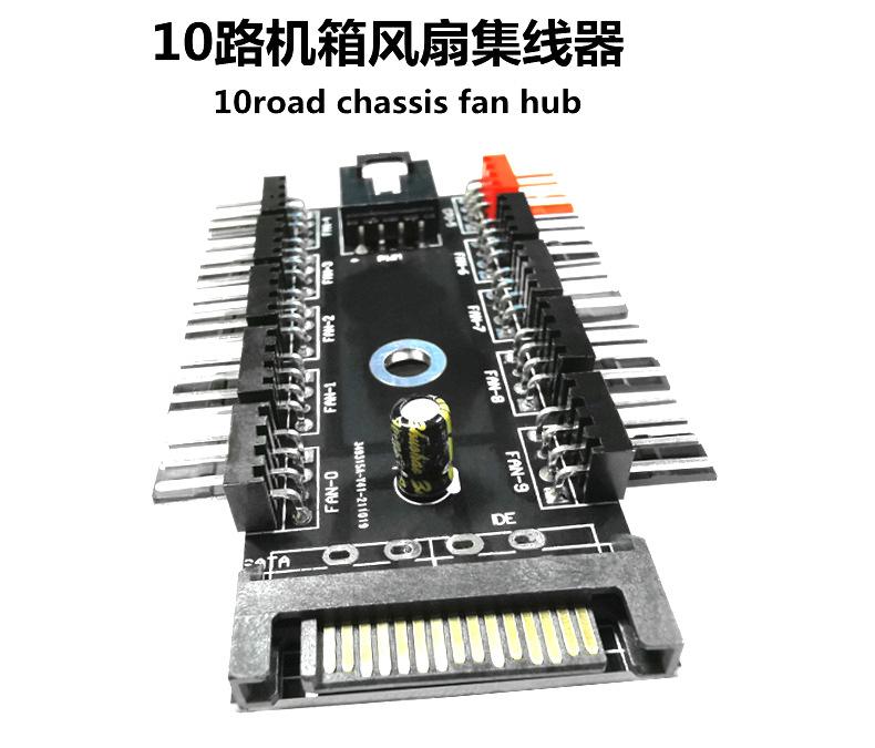 Línea de expansión del ventilador del radiador del chasis de la computadora IDE/SATA a concentrador HUB de 10 vías con control de temperatura PWM de 4 pines