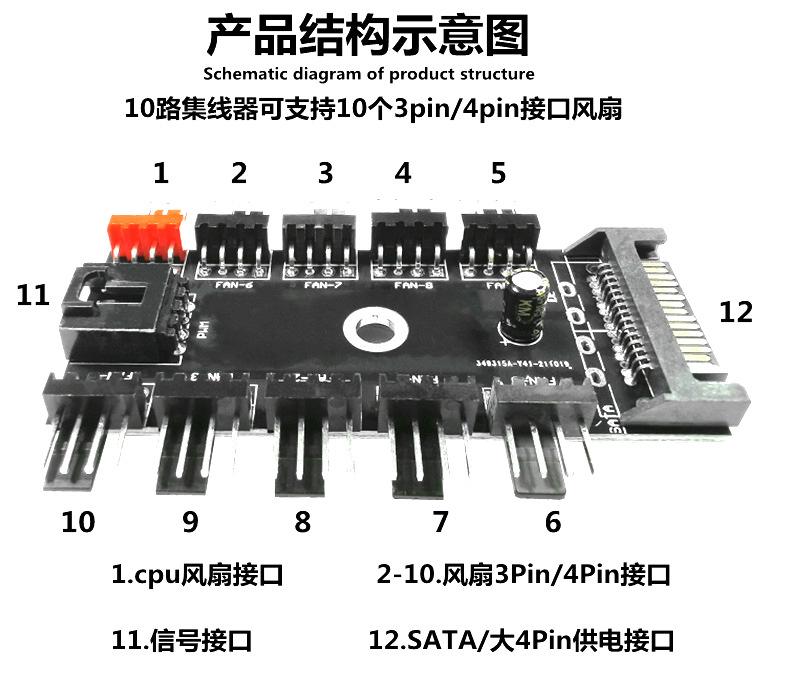 SATA power supply to small 4Pin 10-channel single resistor, Large 4Pin power supply to small 4Pin 10-way single resistor