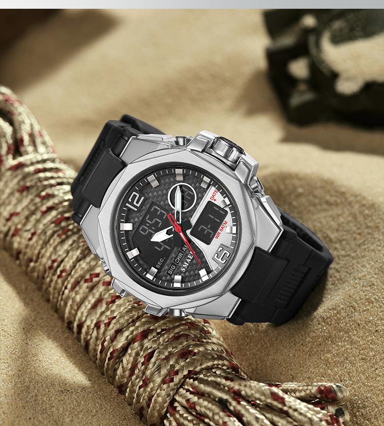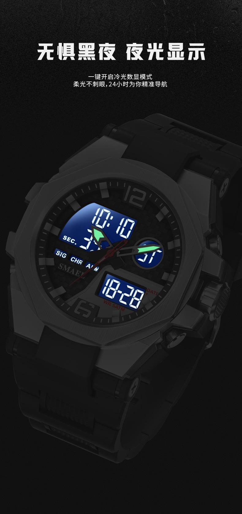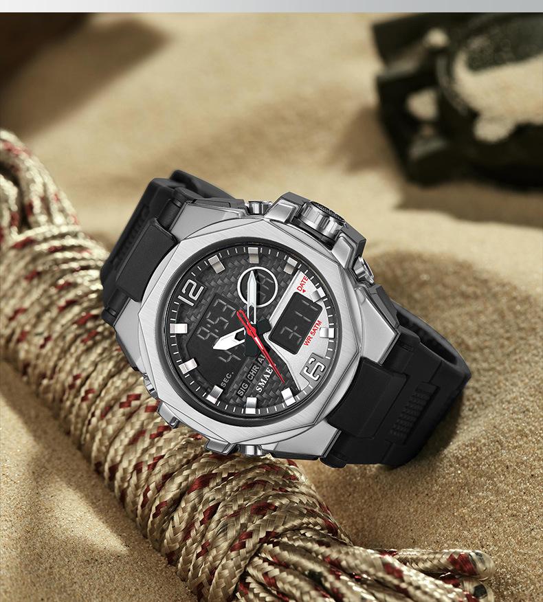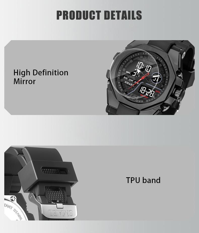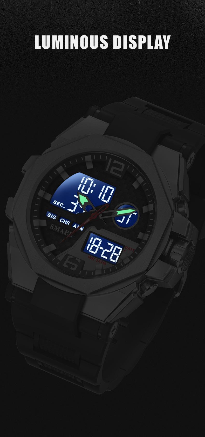 Reloj para Hombre SMAEL SMAEL Tide Reloj Táctico para Exteriores de Aleación Doble Pantalla Luminoso Impermeable Reloj Electrónico de Doble Pantalla