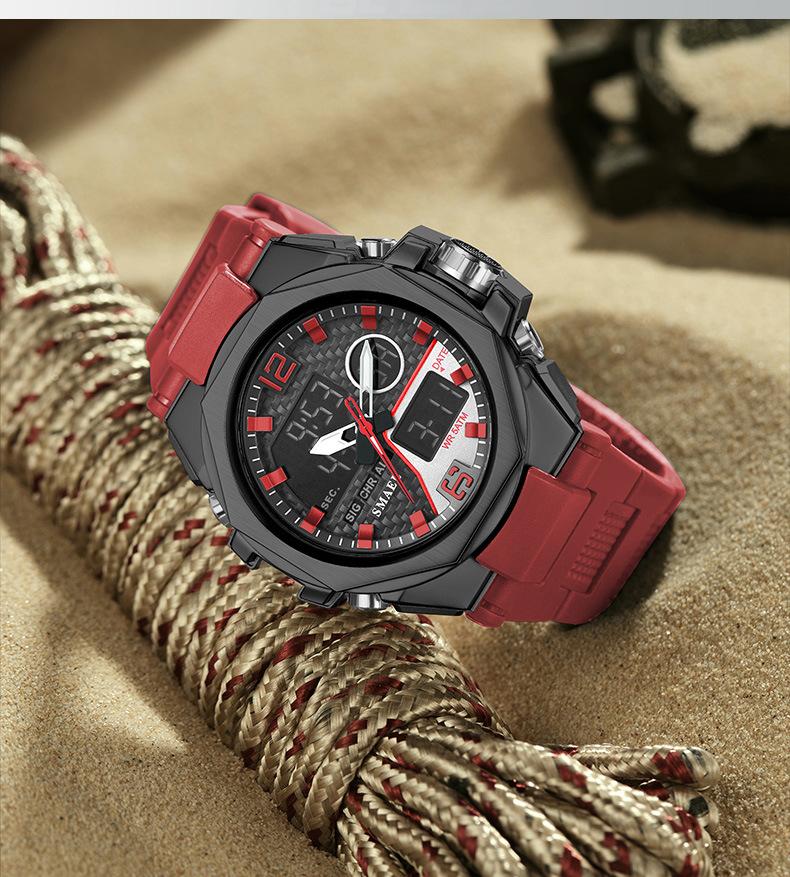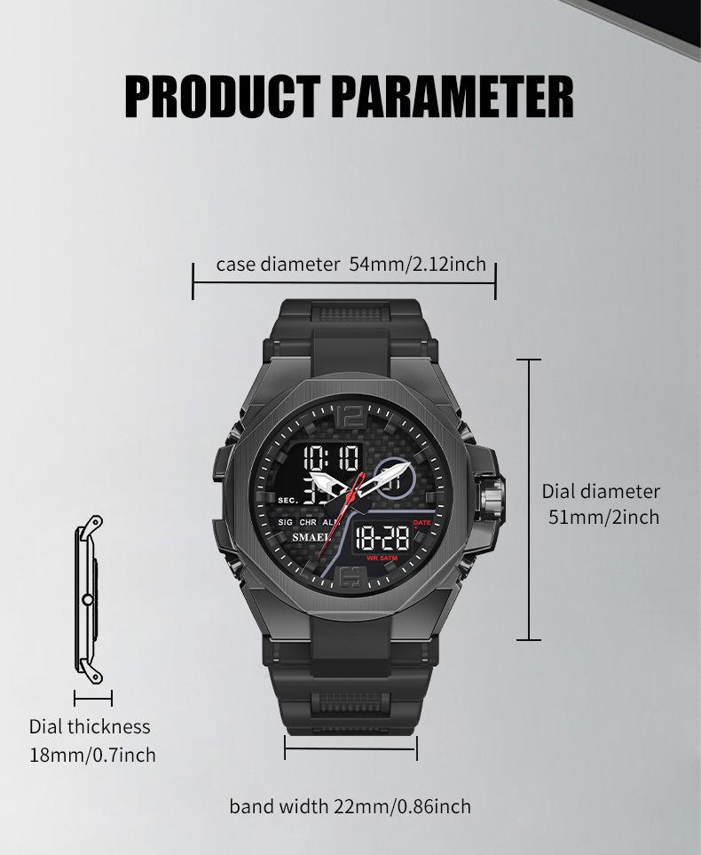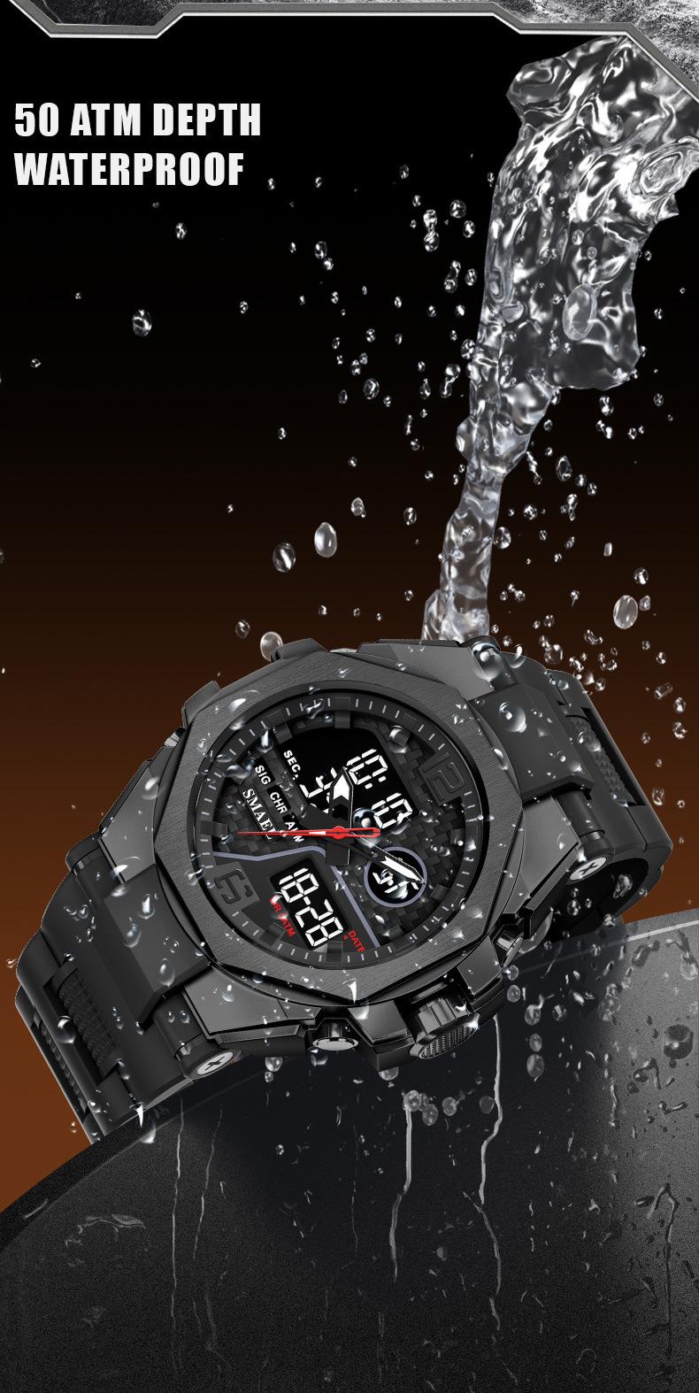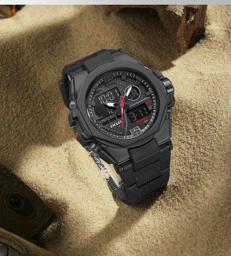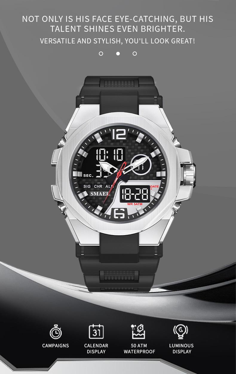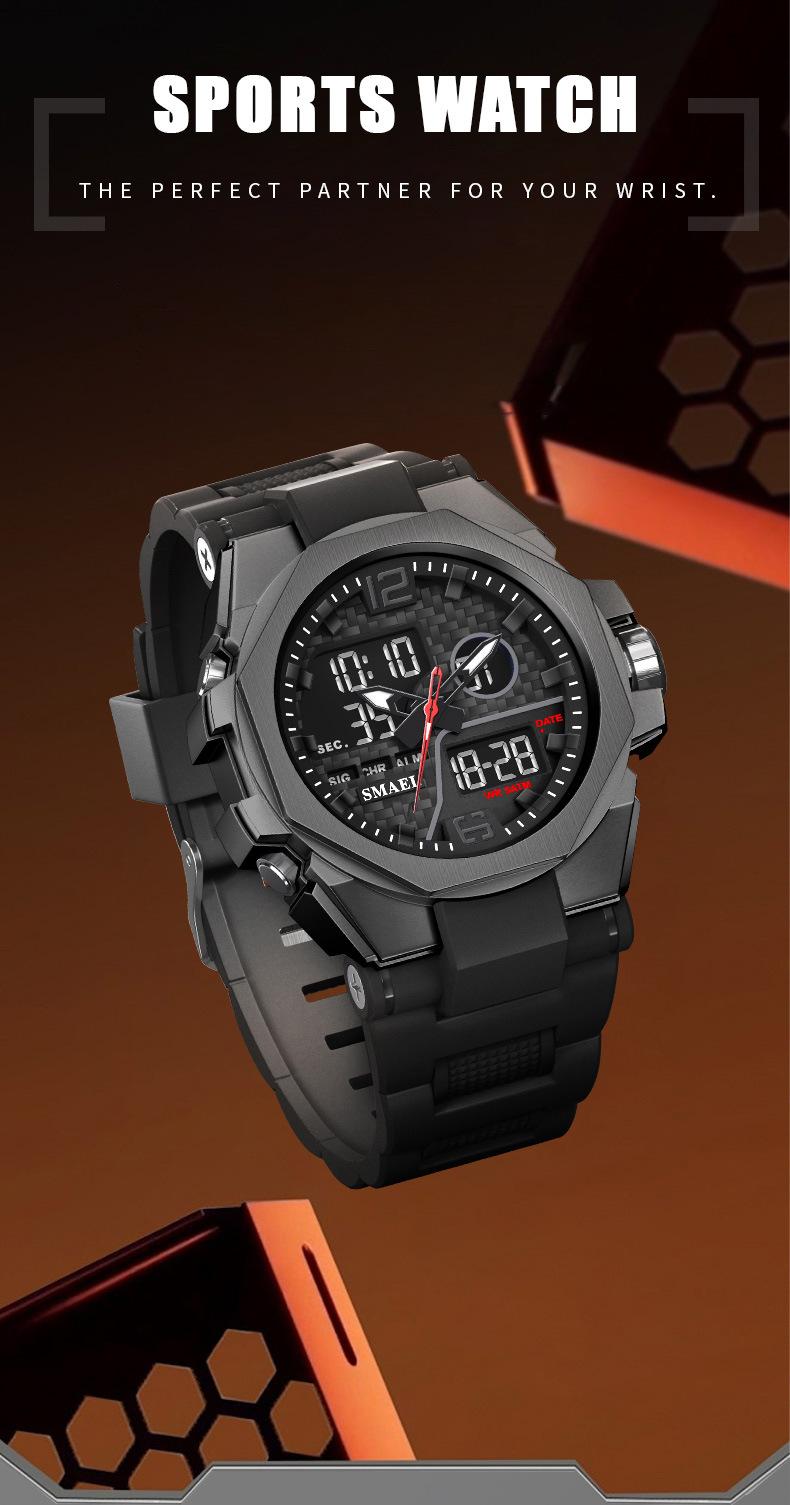 Reloj para Hombre SMAEL SMAEL Tide Reloj Táctico para Exteriores de Aleación Doble Pantalla Luminoso Impermeable Reloj Electrónico de Doble Pantalla