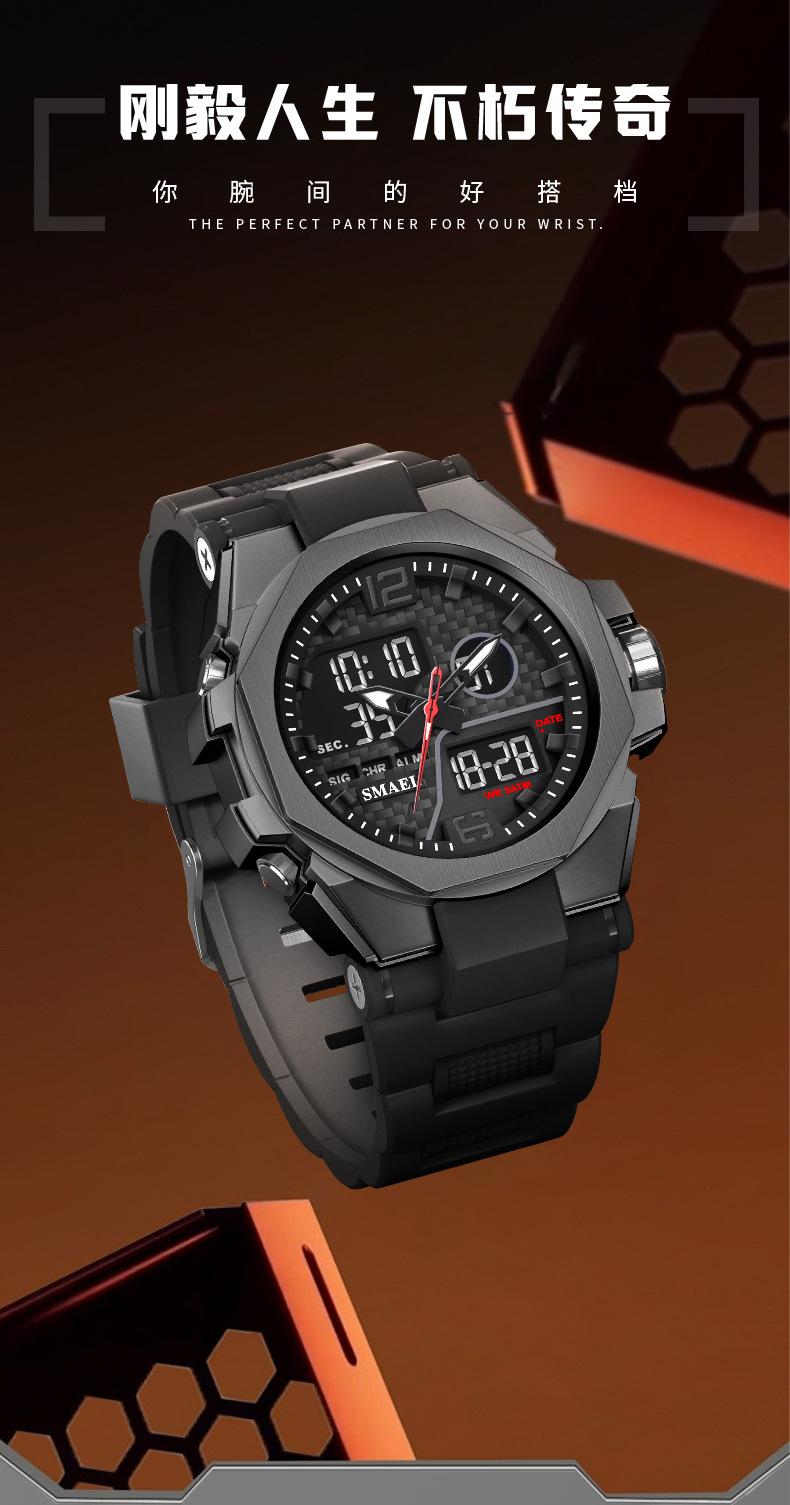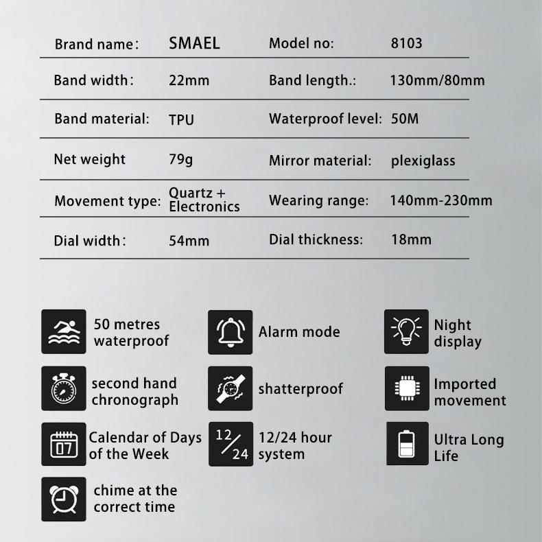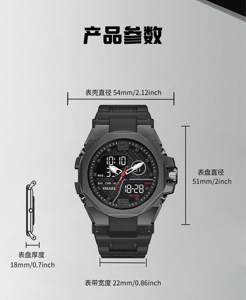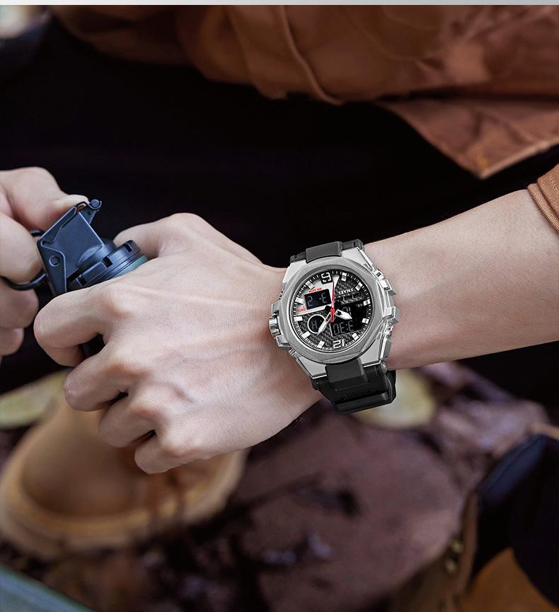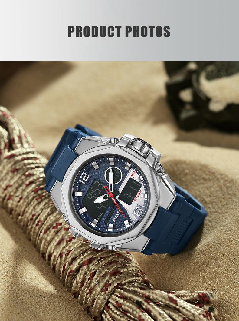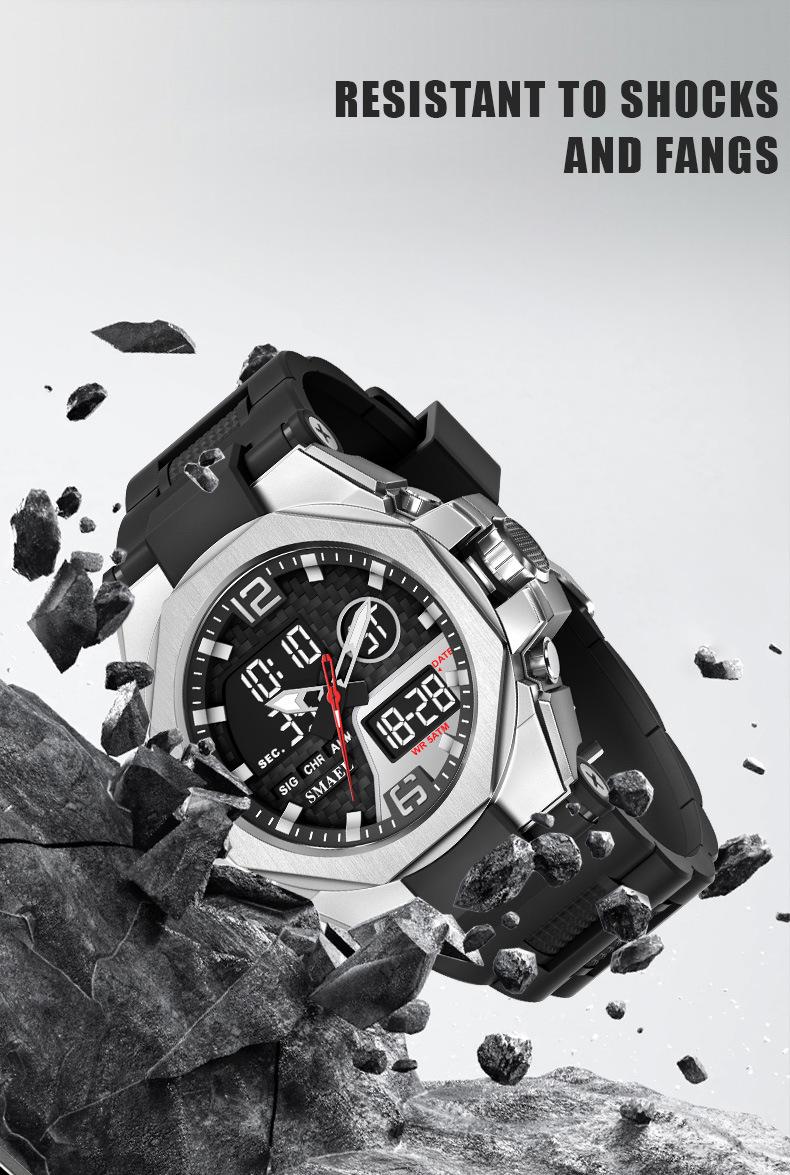 Reloj para Hombre SMAEL SMAEL Tide Reloj Táctico para Exteriores de Aleación Doble Pantalla Luminoso Impermeable Reloj Electrónico de Doble Pantalla