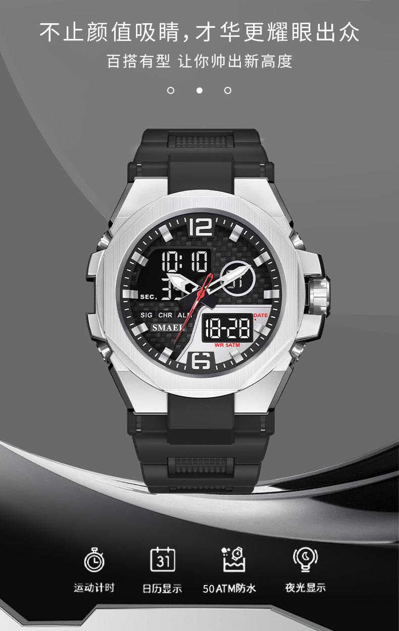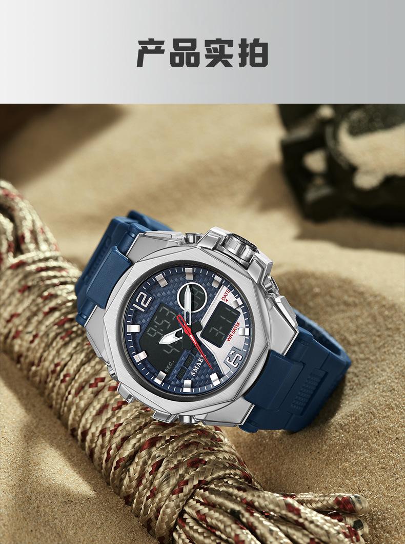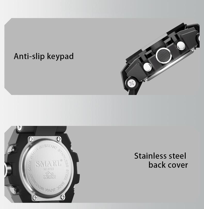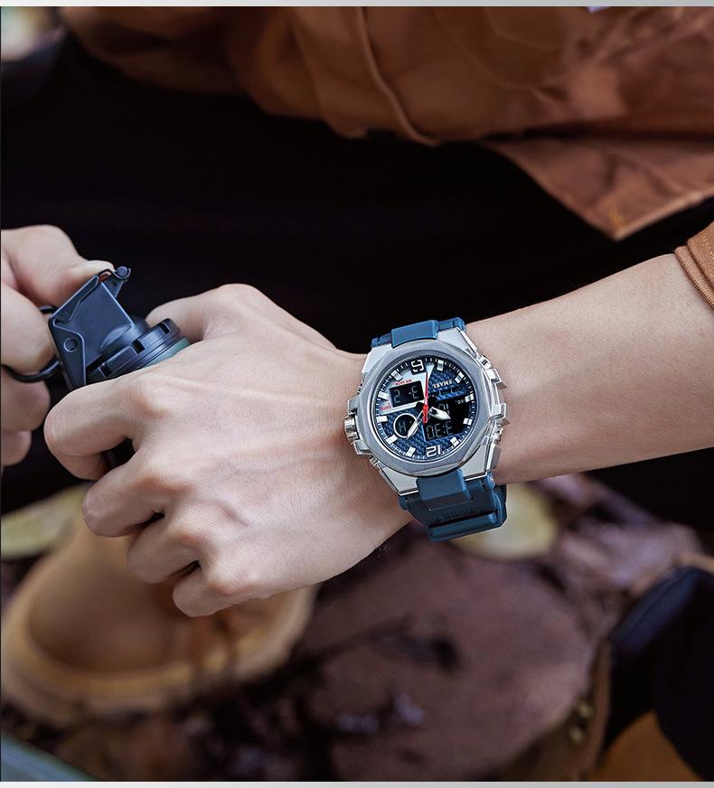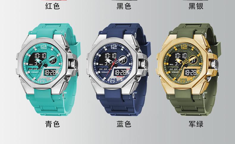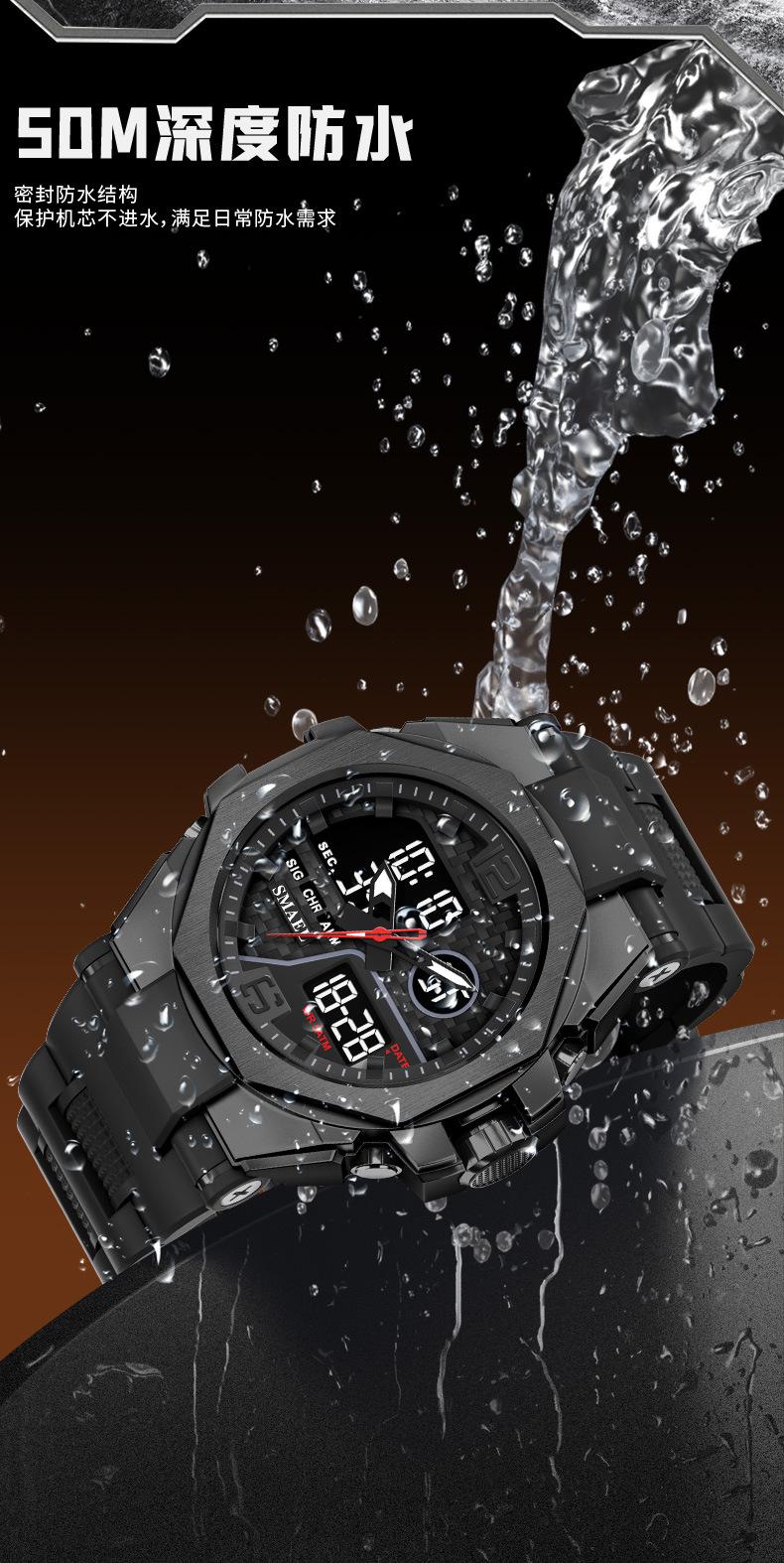 Reloj para Hombre SMAEL SMAEL Tide Reloj Táctico para Exteriores de Aleación Doble Pantalla Luminoso Impermeable Reloj Electrónico de Doble Pantalla