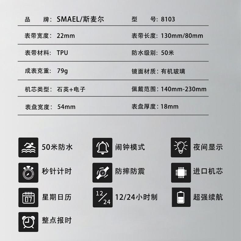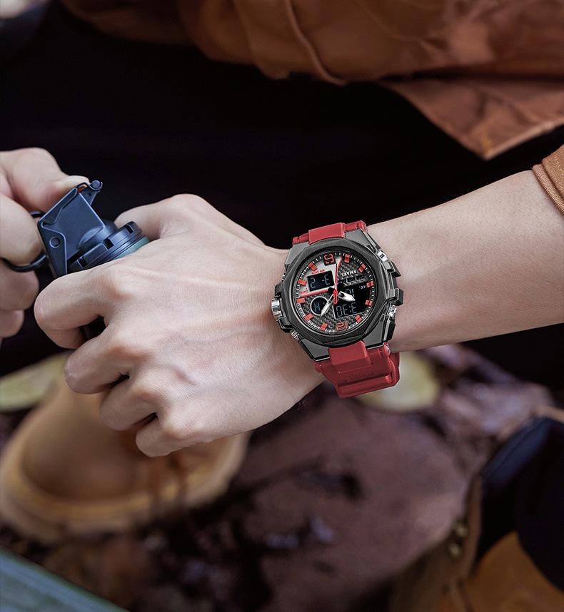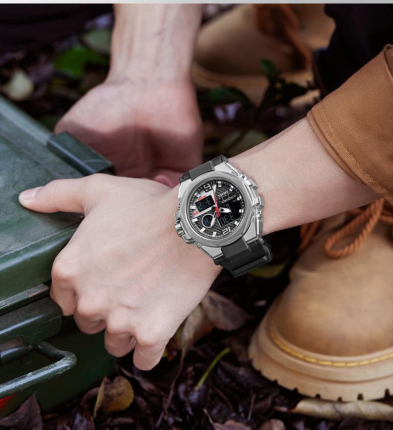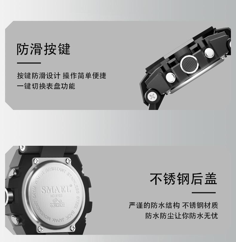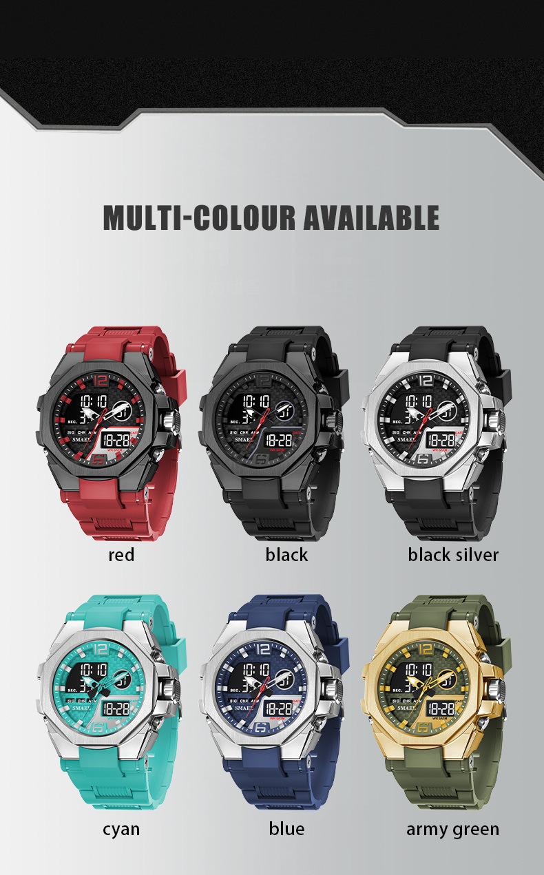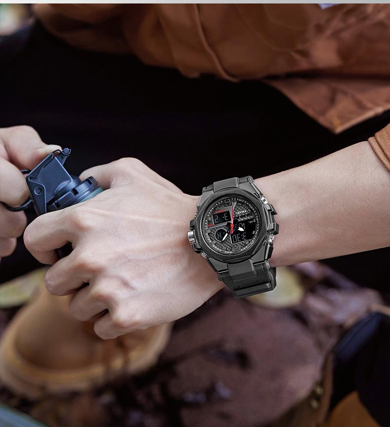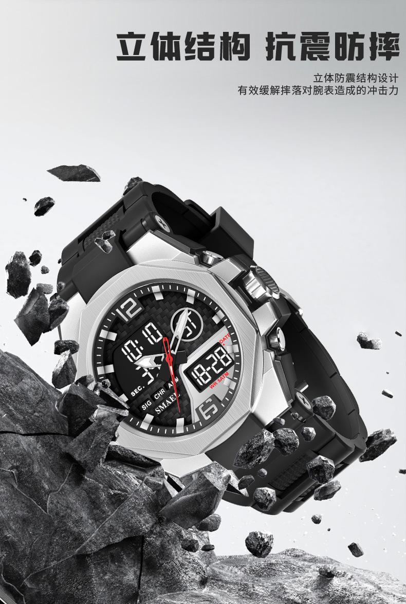 Reloj para Hombre SMAEL SMAEL Tide Reloj Táctico para Exteriores de Aleación Doble Pantalla Luminoso Impermeable Reloj Electrónico de Doble Pantalla