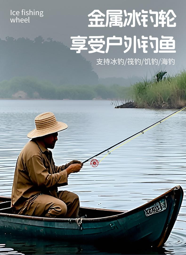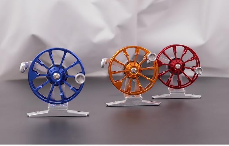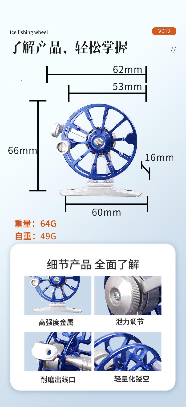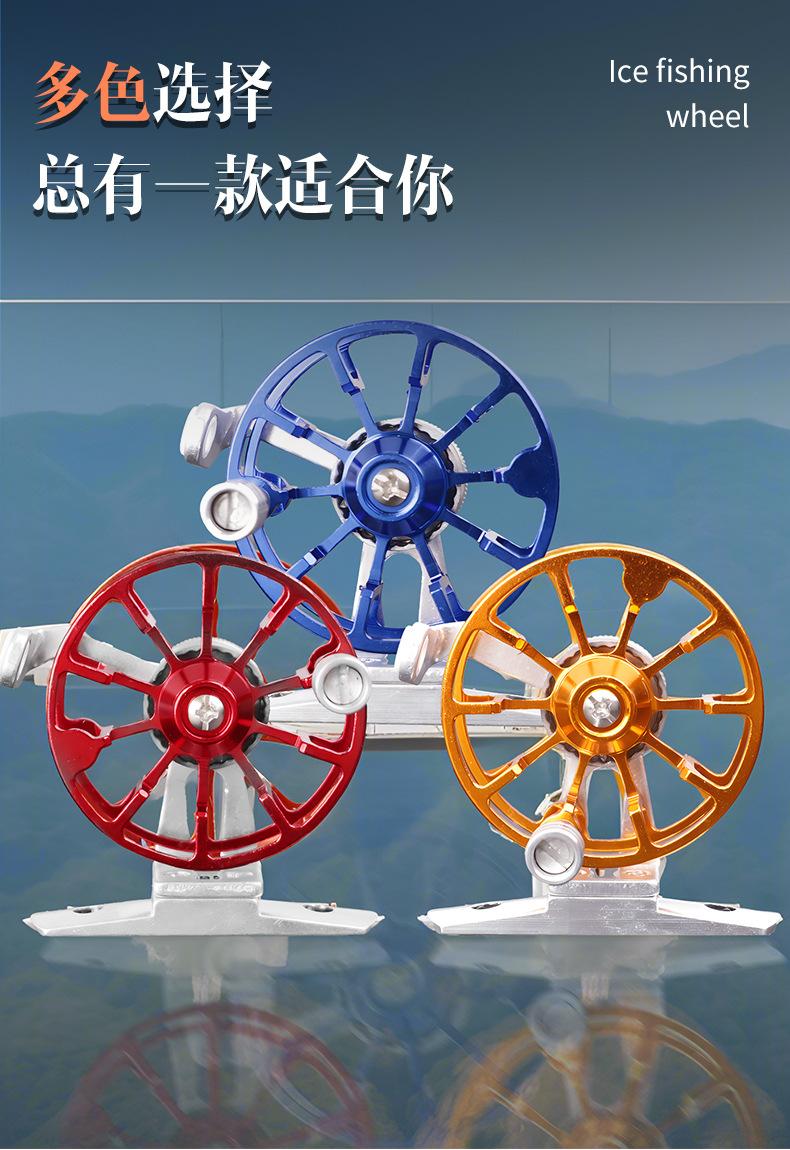 Rueda de pesca en hielo de metal transfronteriza, rueda de pesca con caña delantera de lanzamiento largo, rueda de pesca con fuerza de descarga, pesca en hielo de invierno, rueda delantera de copa de alambre mediano