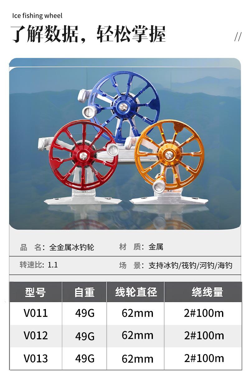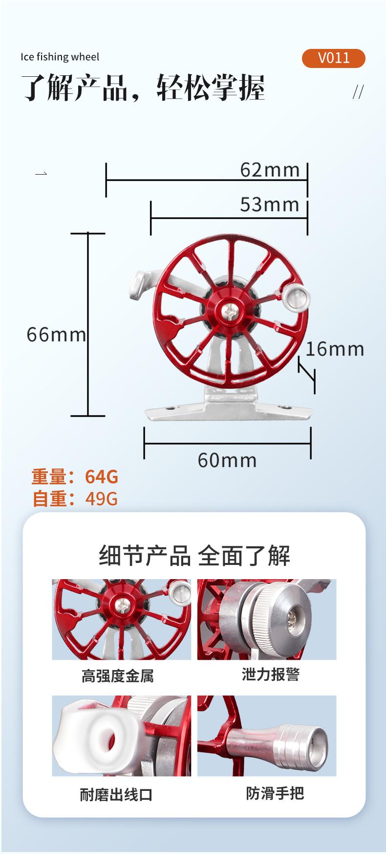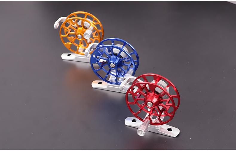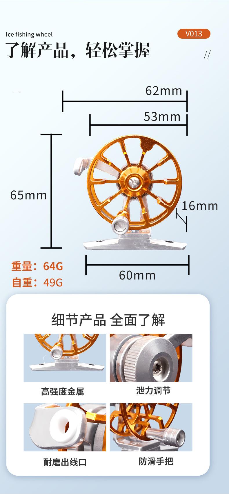 Rueda de pesca en hielo de metal transfronteriza, rueda de pesca con caña delantera de lanzamiento largo, rueda de pesca con fuerza de descarga, pesca en hielo de invierno, rueda delantera de copa de alambre mediano