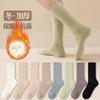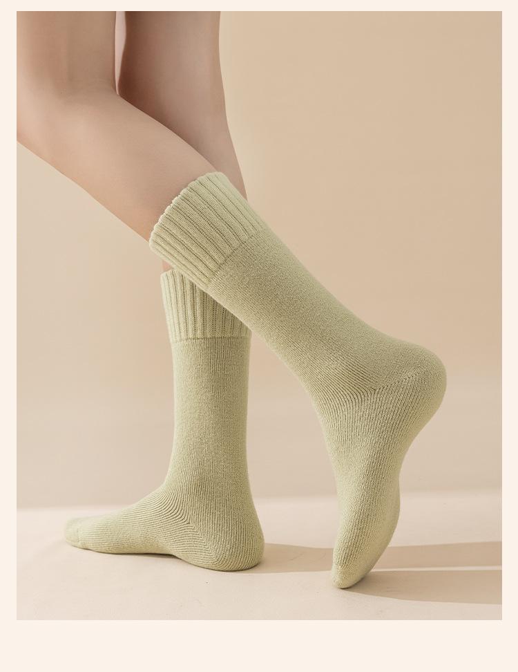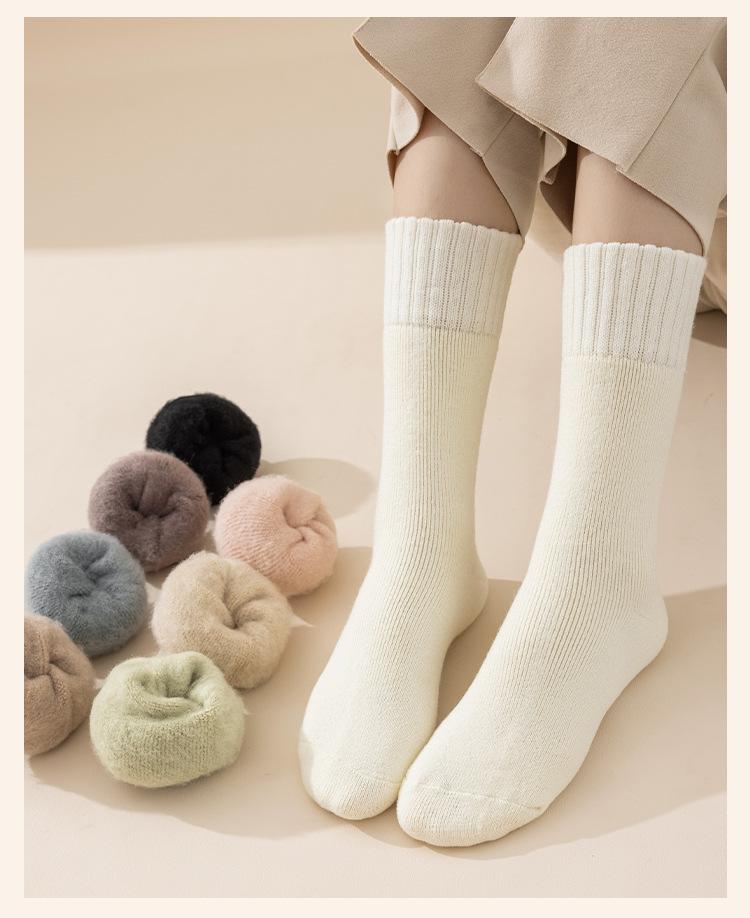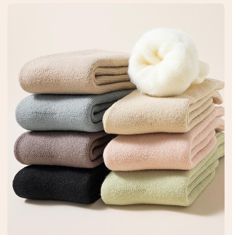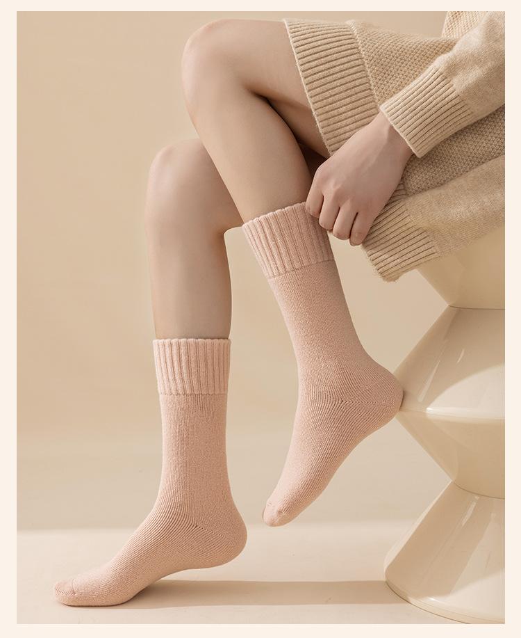 Medias de mujer con forro polar grueso para otoño e invierno, cálidas, de felpa, súper gruesas, hasta media pantorrilla, medias calefactoras de lana de cordero.