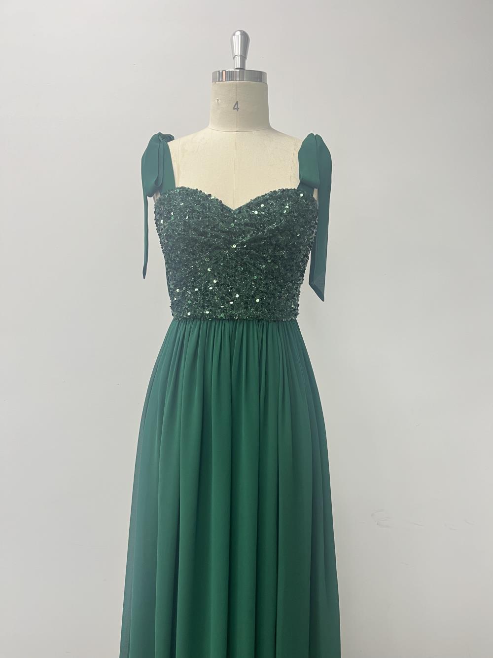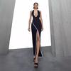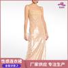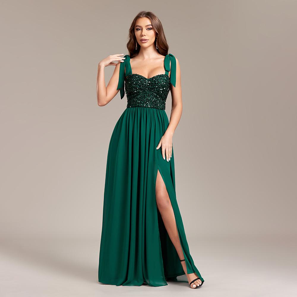 Nuevo vestido de fiesta de cumpleaños de gasa con costura de lentejuelas y abertura alta, vestido de noche con tirantes anudados y espalda descubierta.