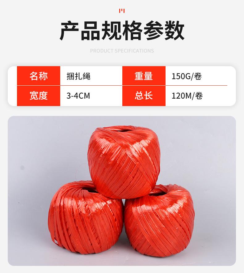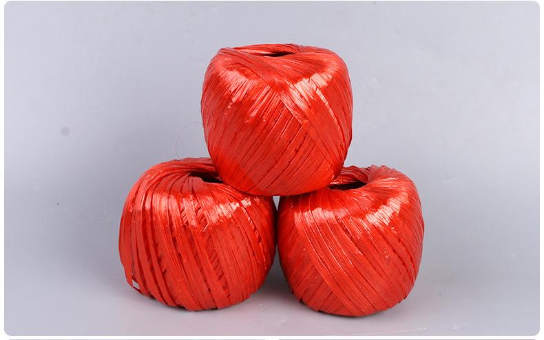 Cuerda de atar con bola de plástico de seda plana de color de 150 g, cuerda de atar con bola de paja, embalaje fijo, película de rasgado