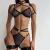 Comercio Exterior Lencería Sexy Nueva Europea y Americana Sexy Malla Patrón Rombos Liguero Transparente Traje Sexy Venta al por Mayor