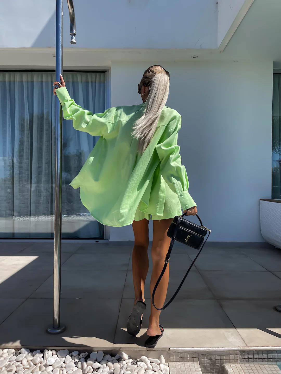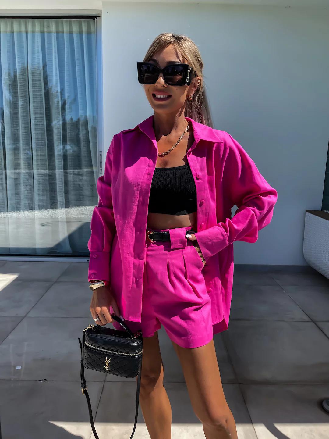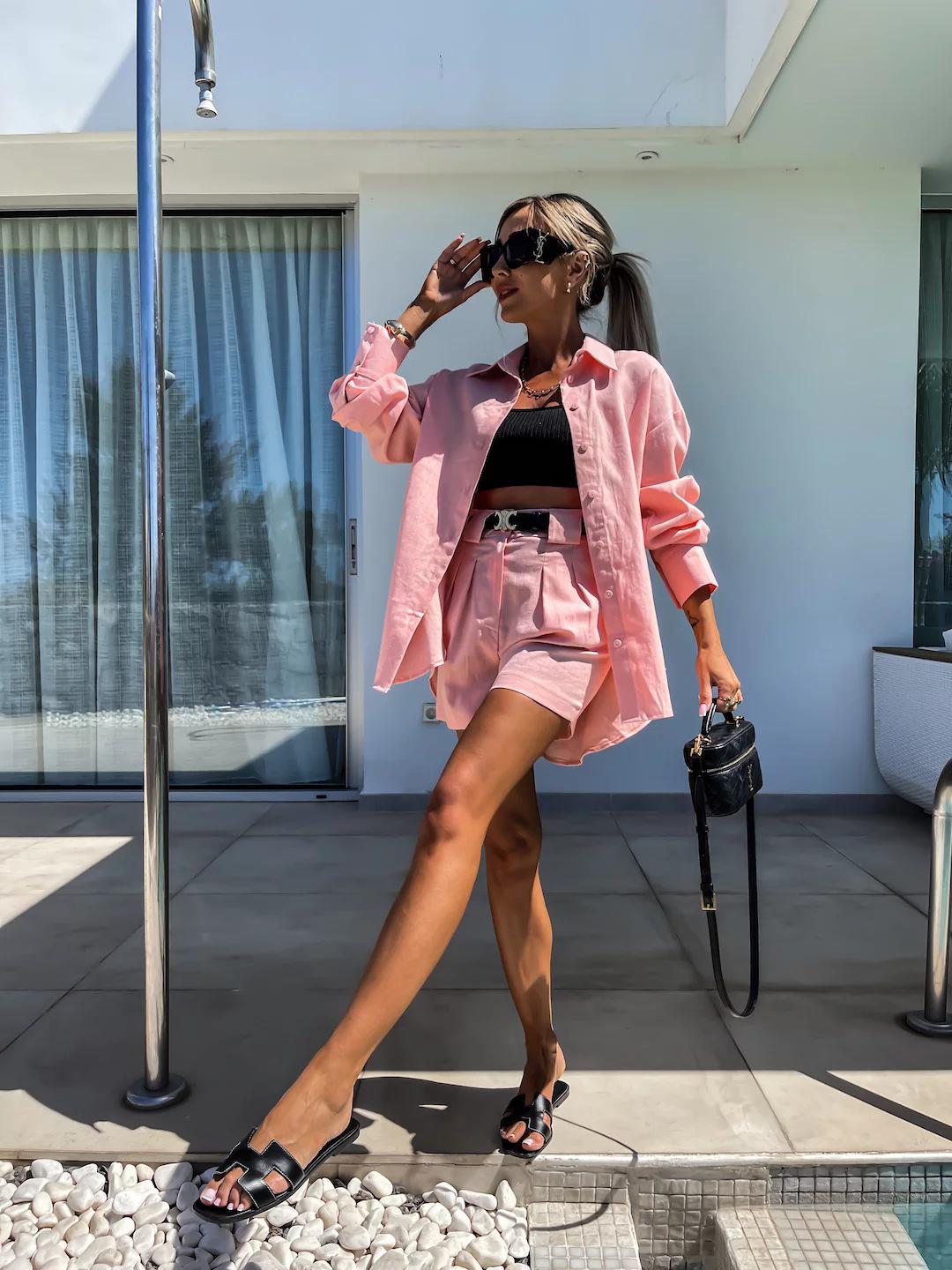 Traje Casual de Moda Europea y Americana para Verano 2024 para Mujer, Pantalones Cortos de Manga Larga para Mujer, Traje de Verano de Dos Piezas para Mujer de Amazon