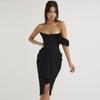 Vestido de noche largo sin mangas, elegante, de color liso, con cuello cuadrado, cintura sexy, espalda descubierta y cadera, para mujer europea y americana transfronteriza