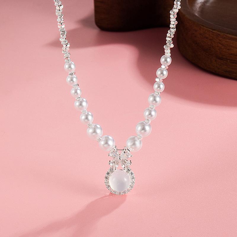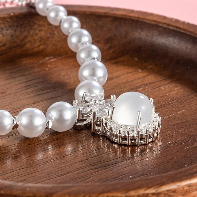Broken Silver Pearl Flower Zircon Necklace Copper