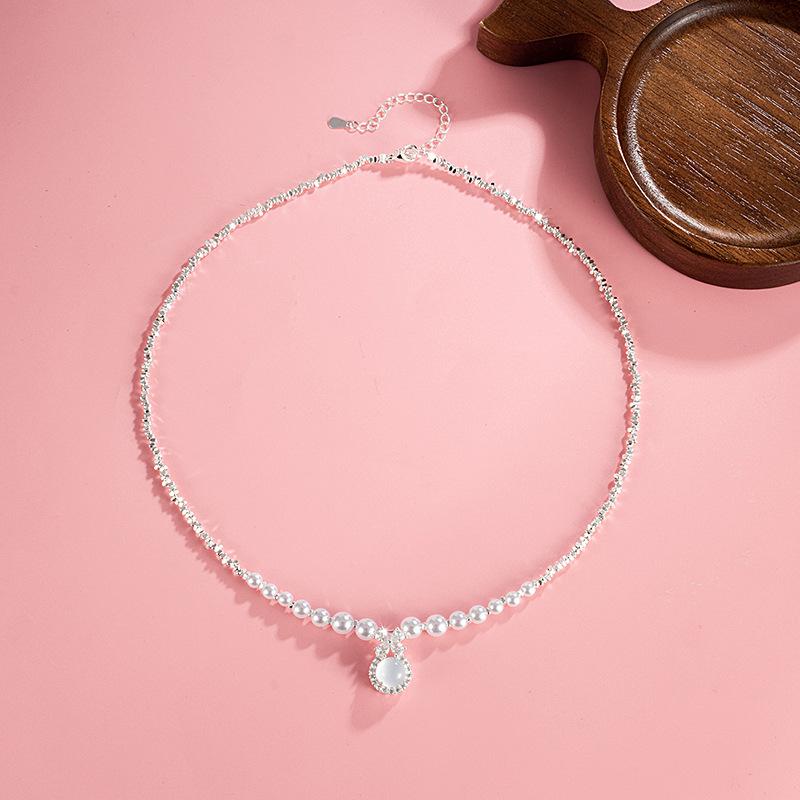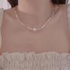 Collar de circonita con flor de perla de plata rota, diseño de nicho, para mujer, de verano, de alta gama, para uso diario, cadena de clavícula