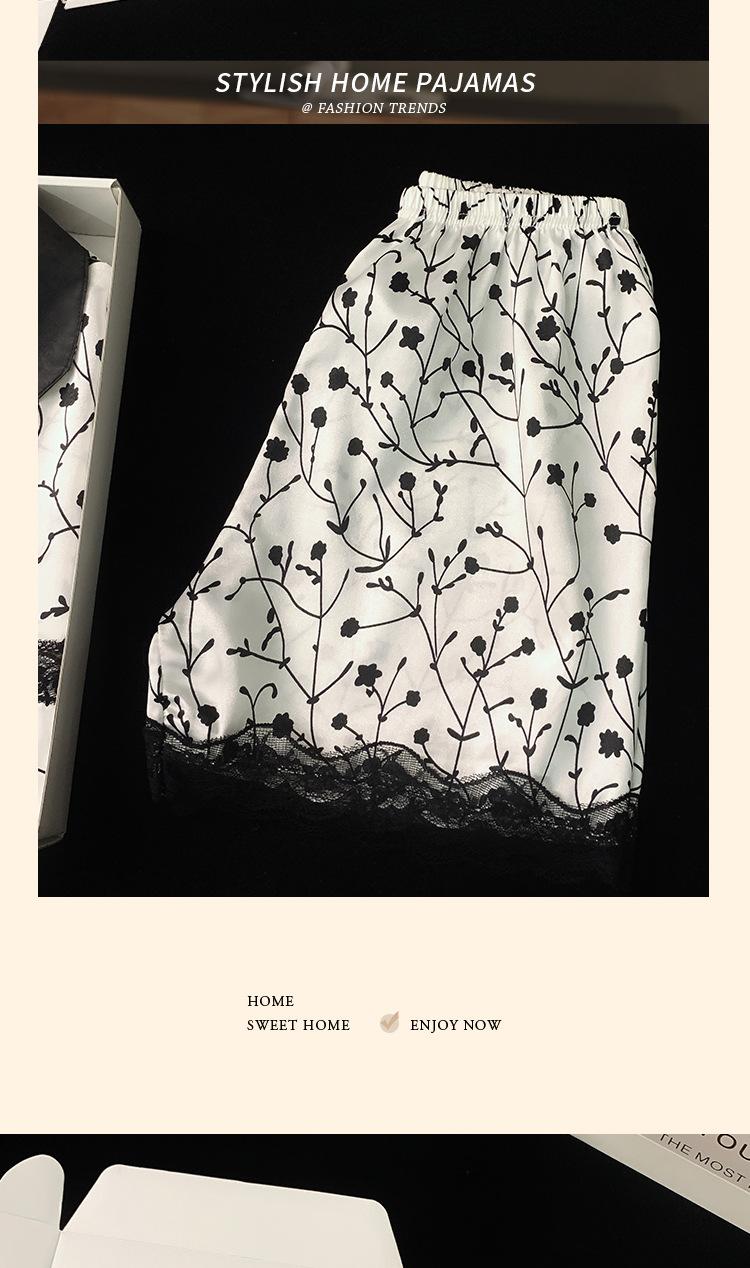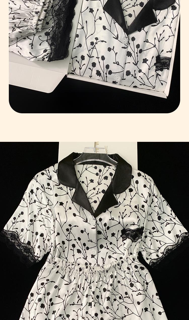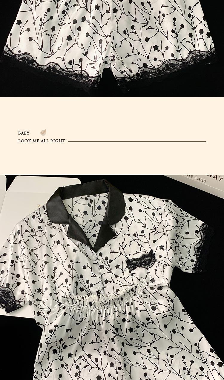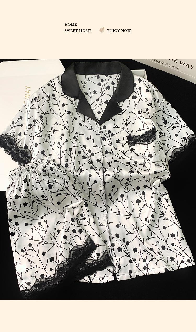 Pijama de verano de seda fría con solapa y encaje, pantalones cortos de manga corta, ropa exterior para el hogar