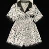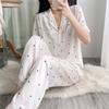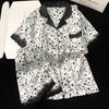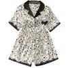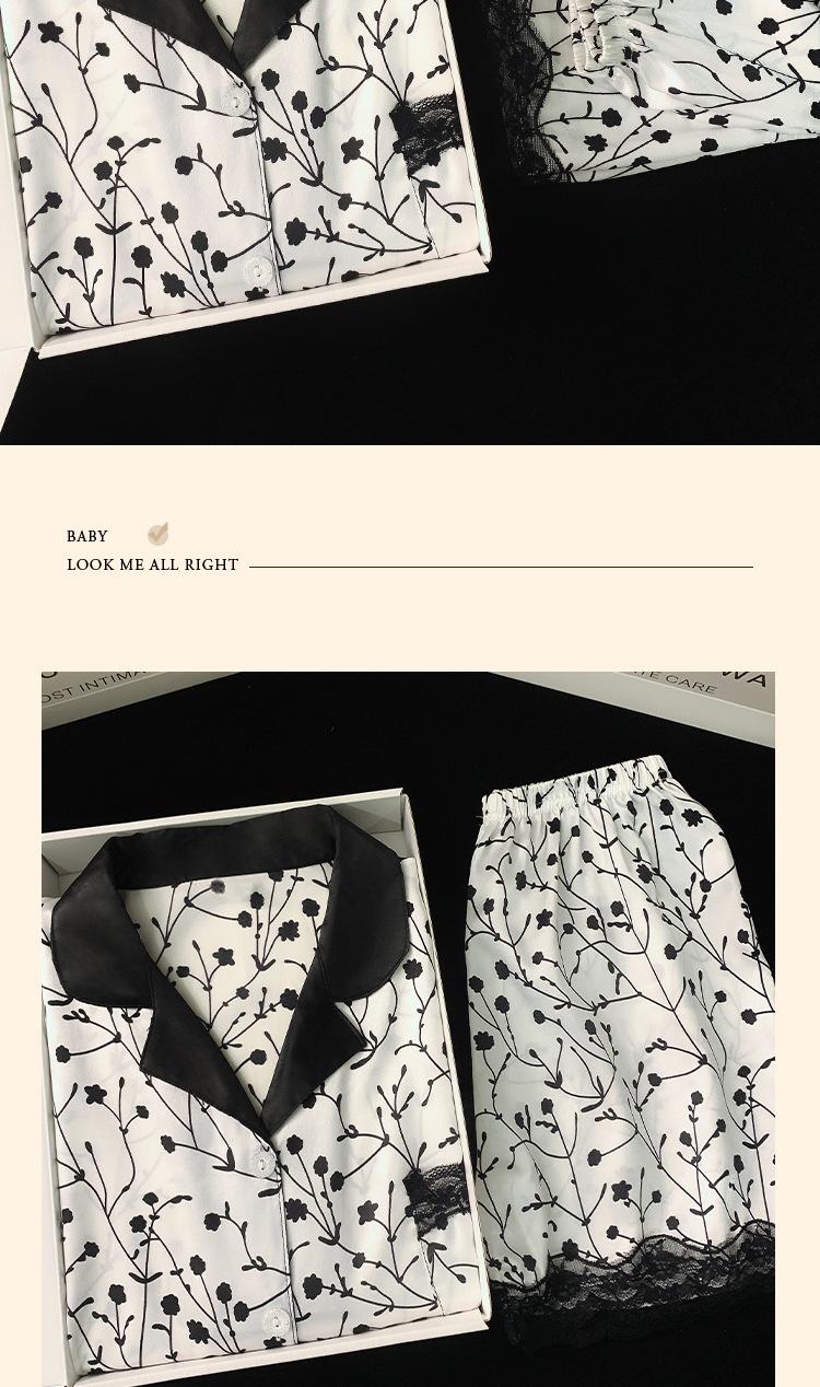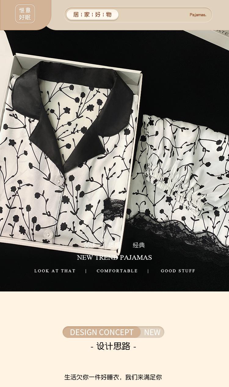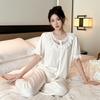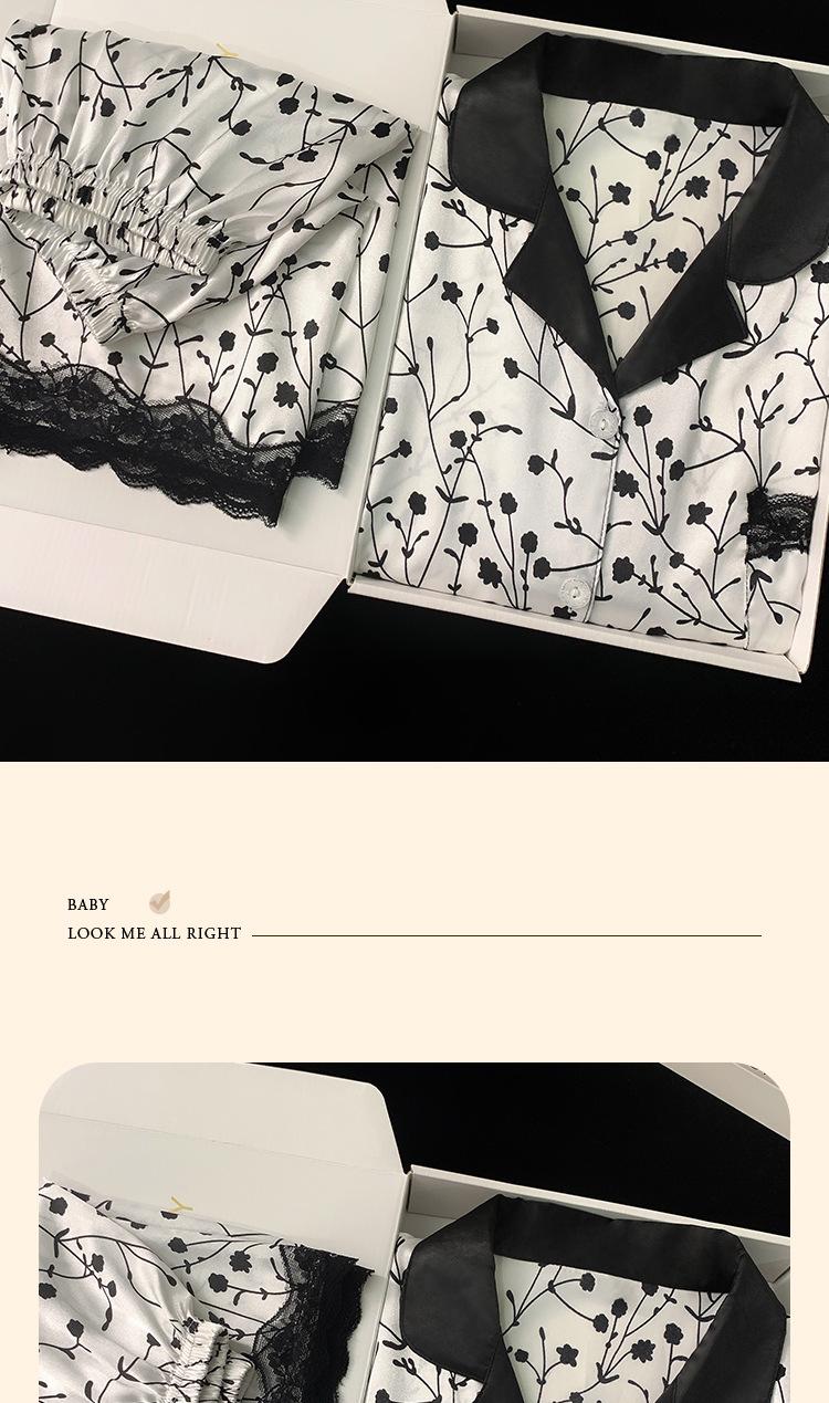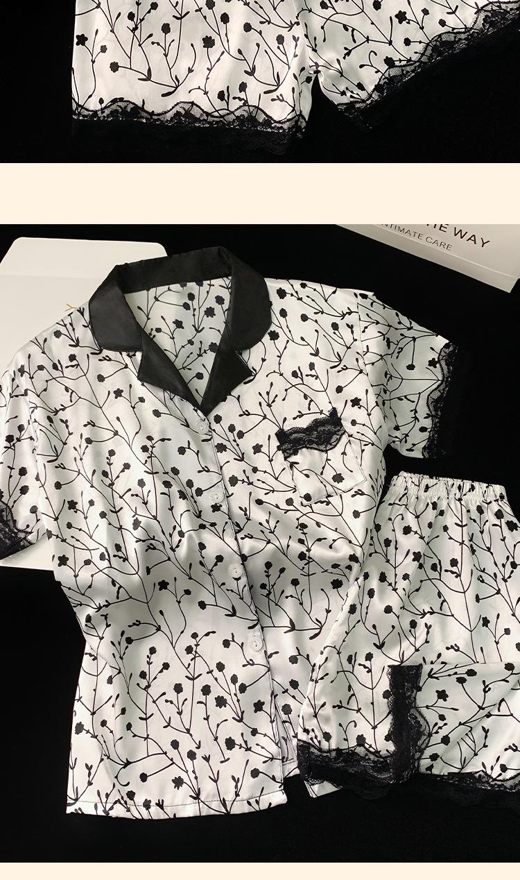 Pijama de verano de seda fría con solapa y encaje, pantalones cortos de manga corta, ropa exterior para el hogar