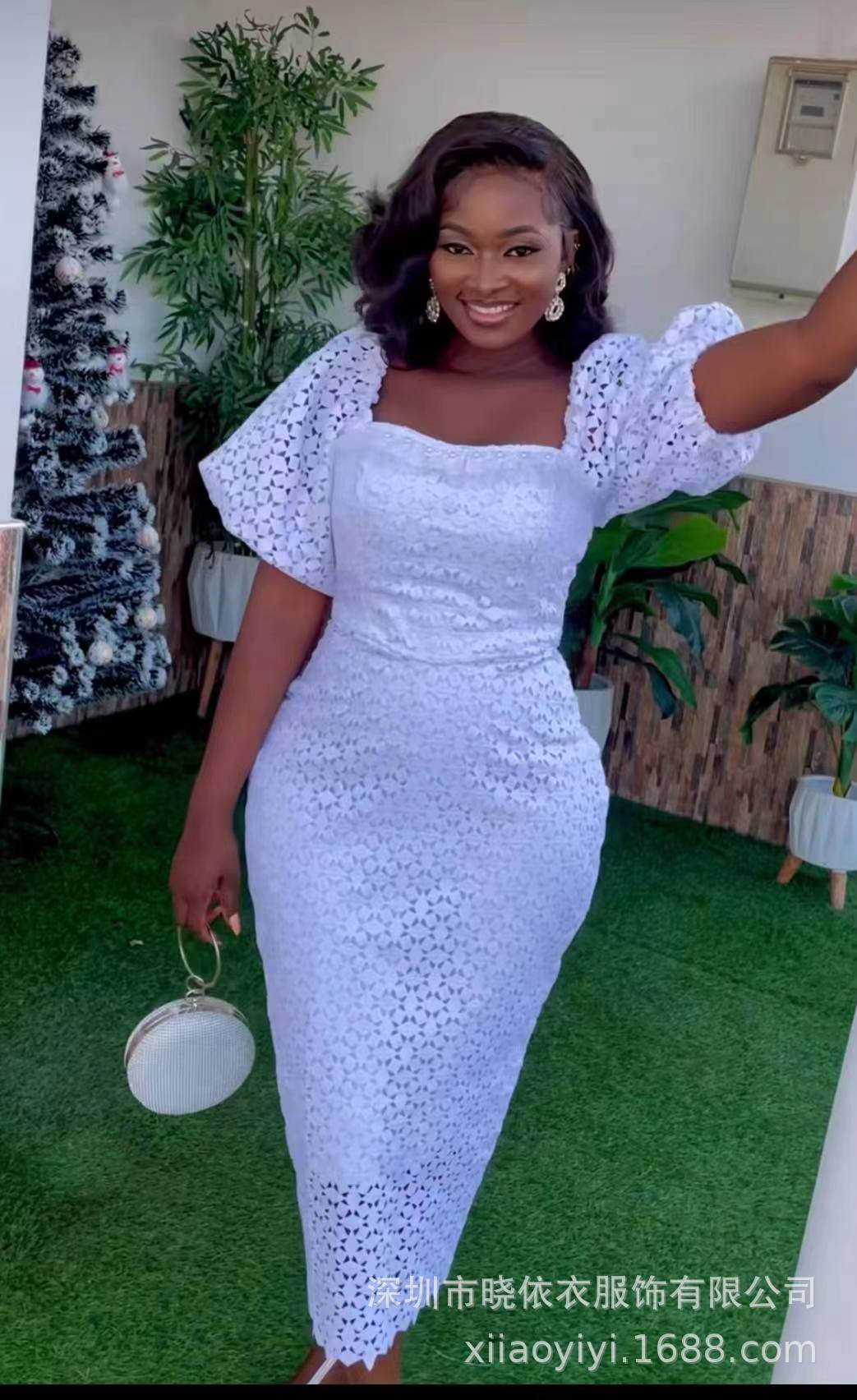 Amazon Comercio Transfronterizo Estilo Europeo y Americano Encaje Soluble en Agua Elegante Commuter Slim Sexy Sin Tirantes Cintura Alta Vestido de Mujer