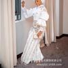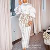 Nuevo Estilo Elegante para Viajeros Transfronterizo Europeo y Americano de Comercio Exterior Top Bordado de Manga Larga Traje de Falda y Pantalón de Dos Piezas con Borlas para Mujer