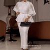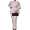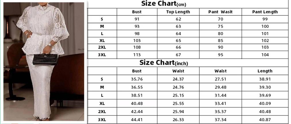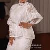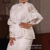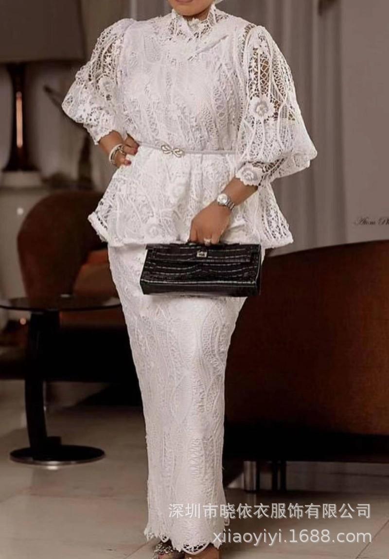 Comercio Transfronterizo de Amazon Estilo Nuevo Europeo y Americano Bordado Soluble en Agua Talla Grande Encaje Top de Manga Larga y Falda Larga Traje de Mujer
