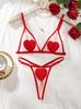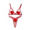 Suministro Transfronterizo Europeo y Americano 2025 Nuevo Conjunto Sexy Día de San Valentín Corazón Bordado Sexy Lencería Transparente Conjunto de Dos Piezas