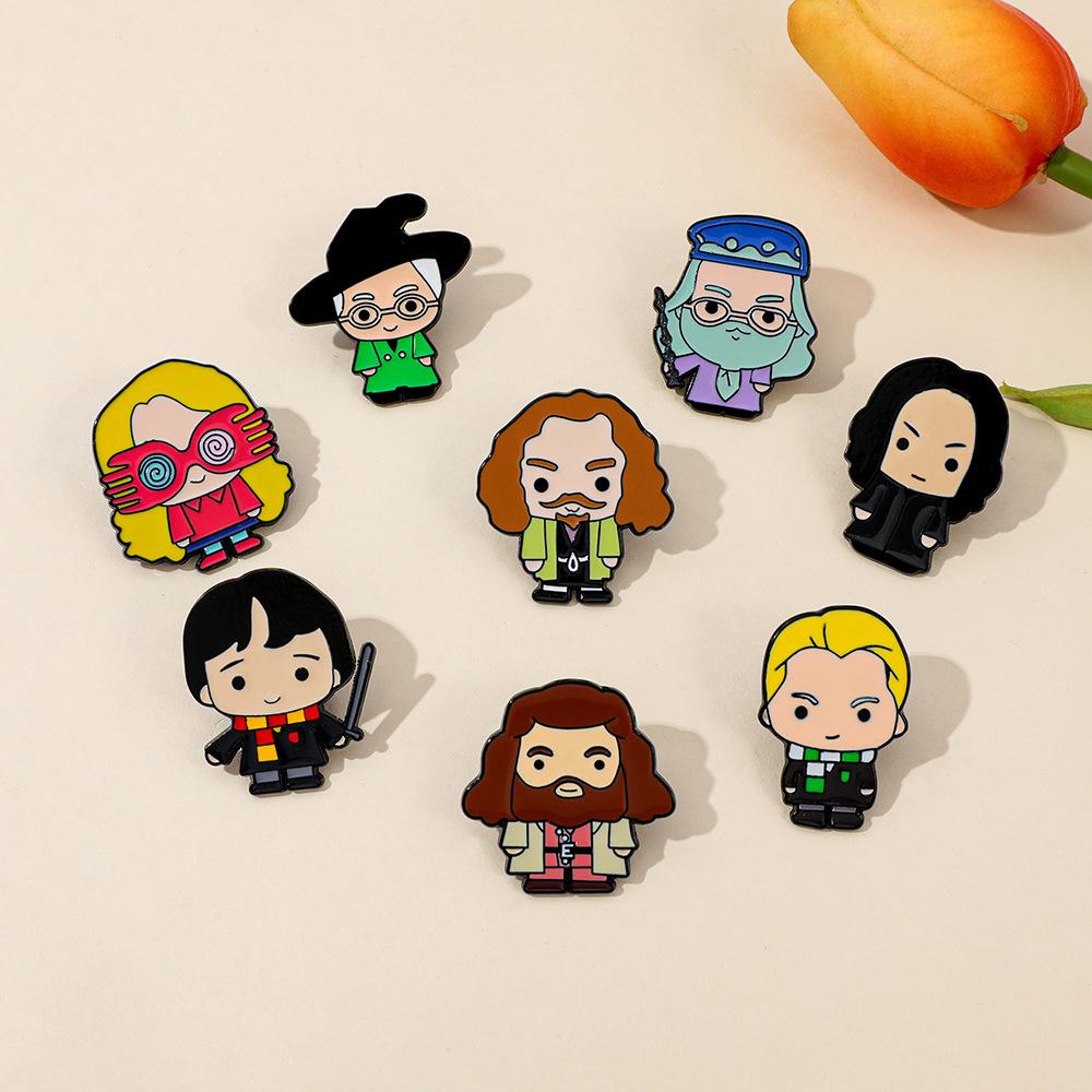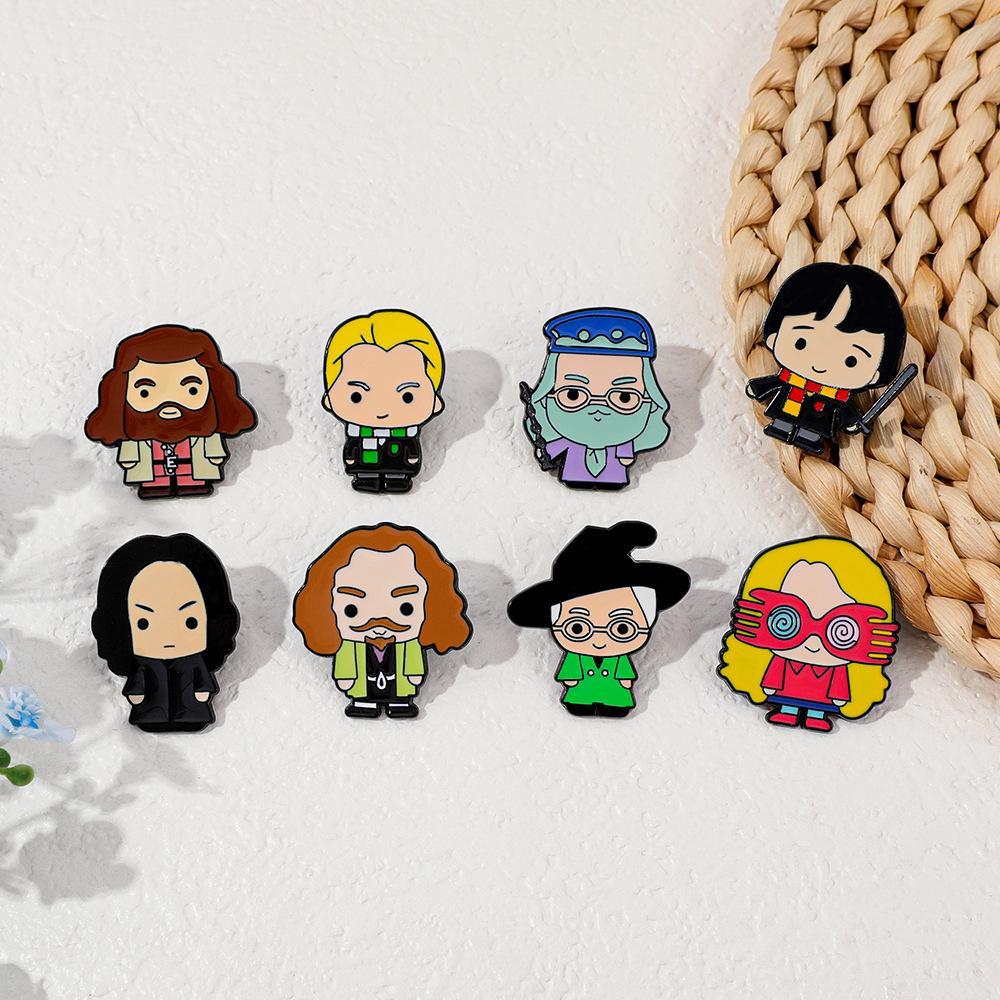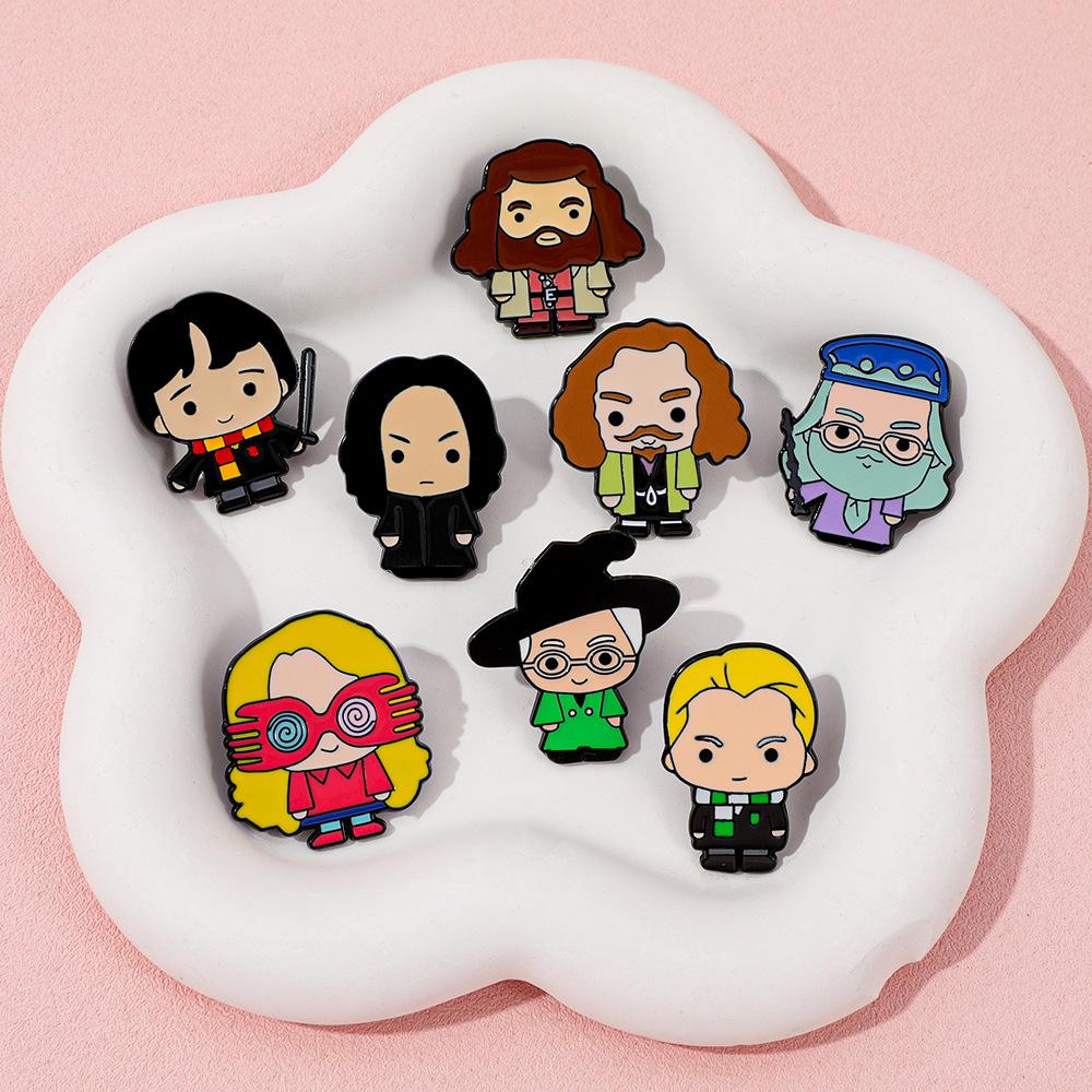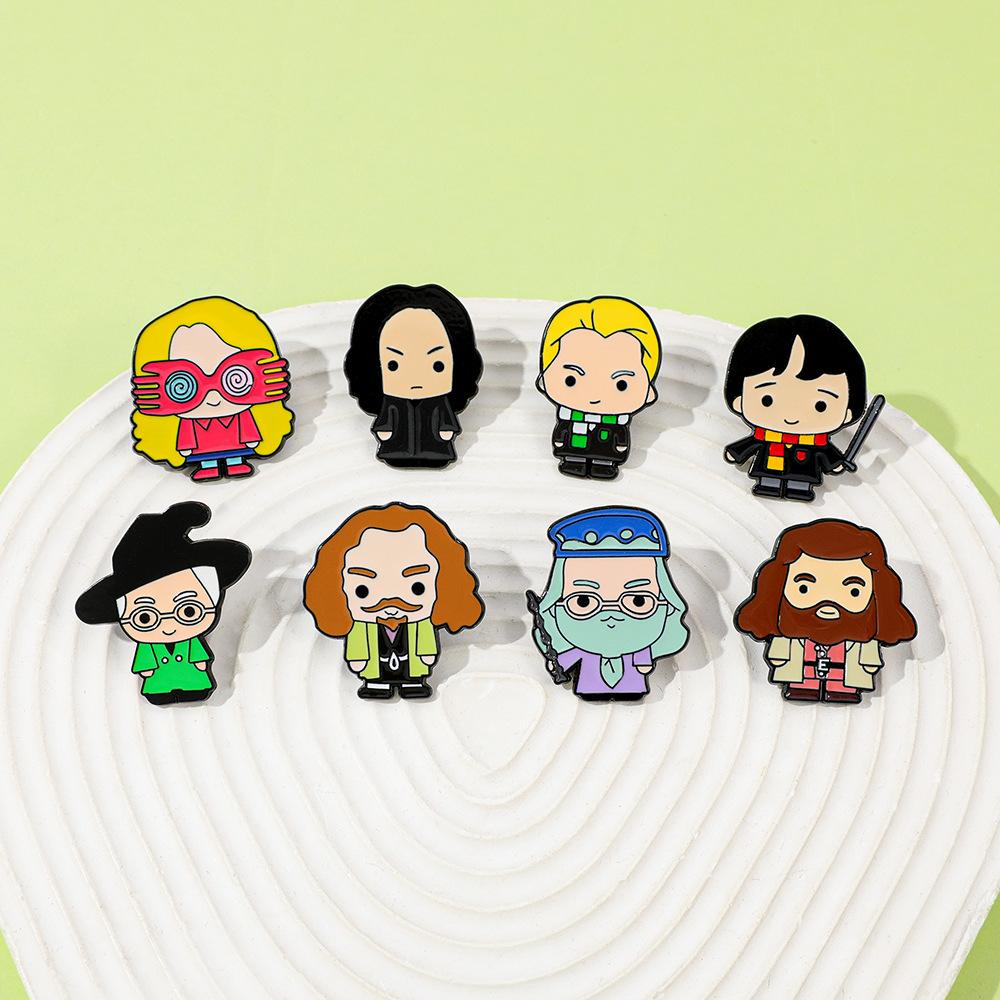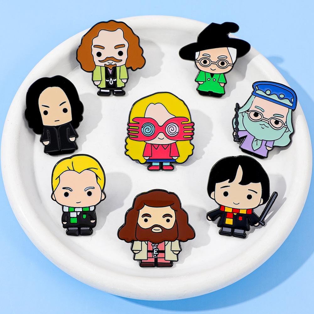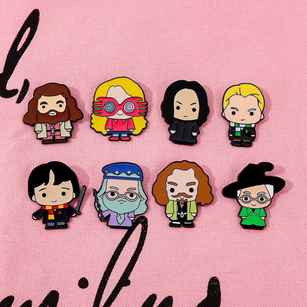 Broche universitario de aleación con forma de gota de aceite, con personajes novedosos, mágicos y creativos de películas y televisión europea y americana