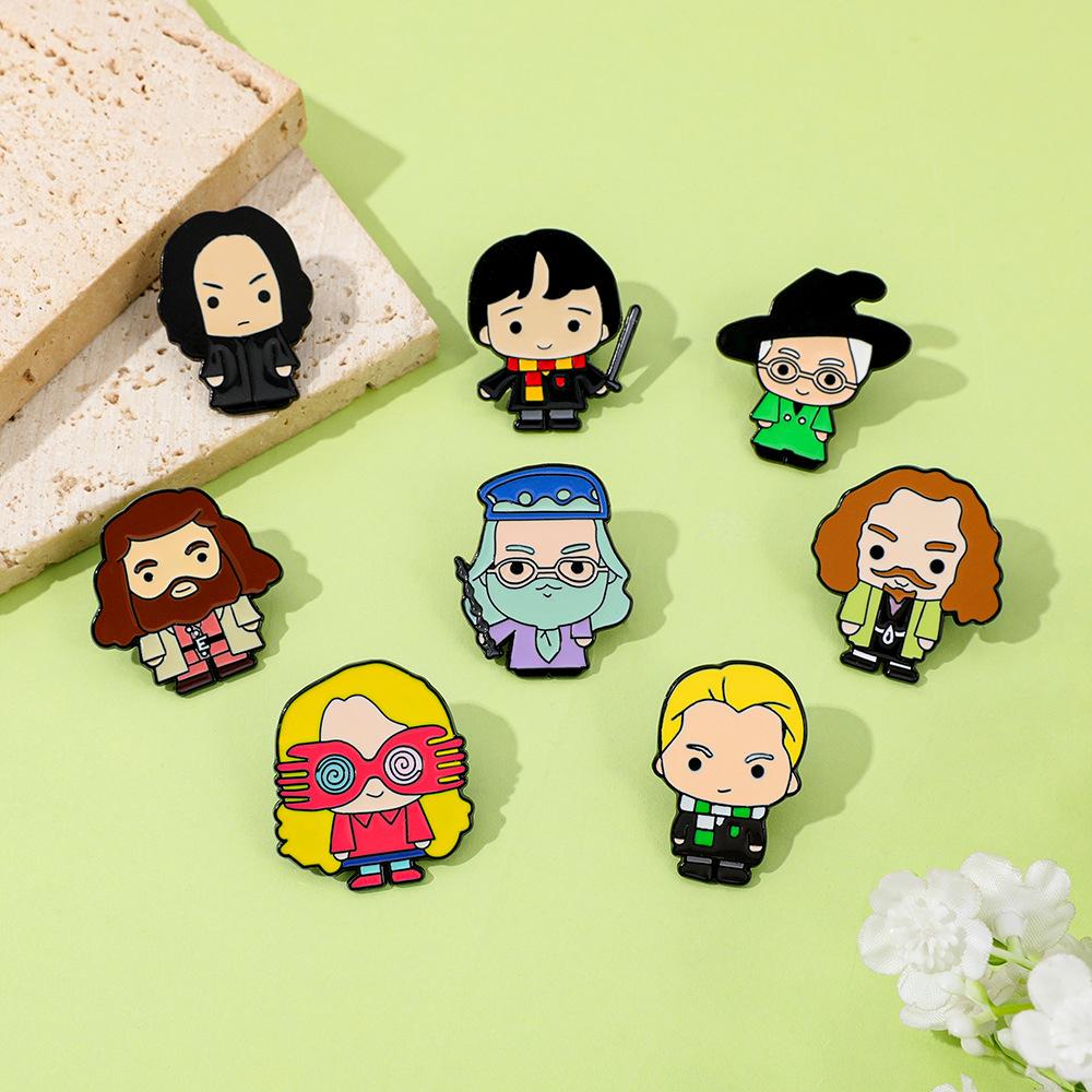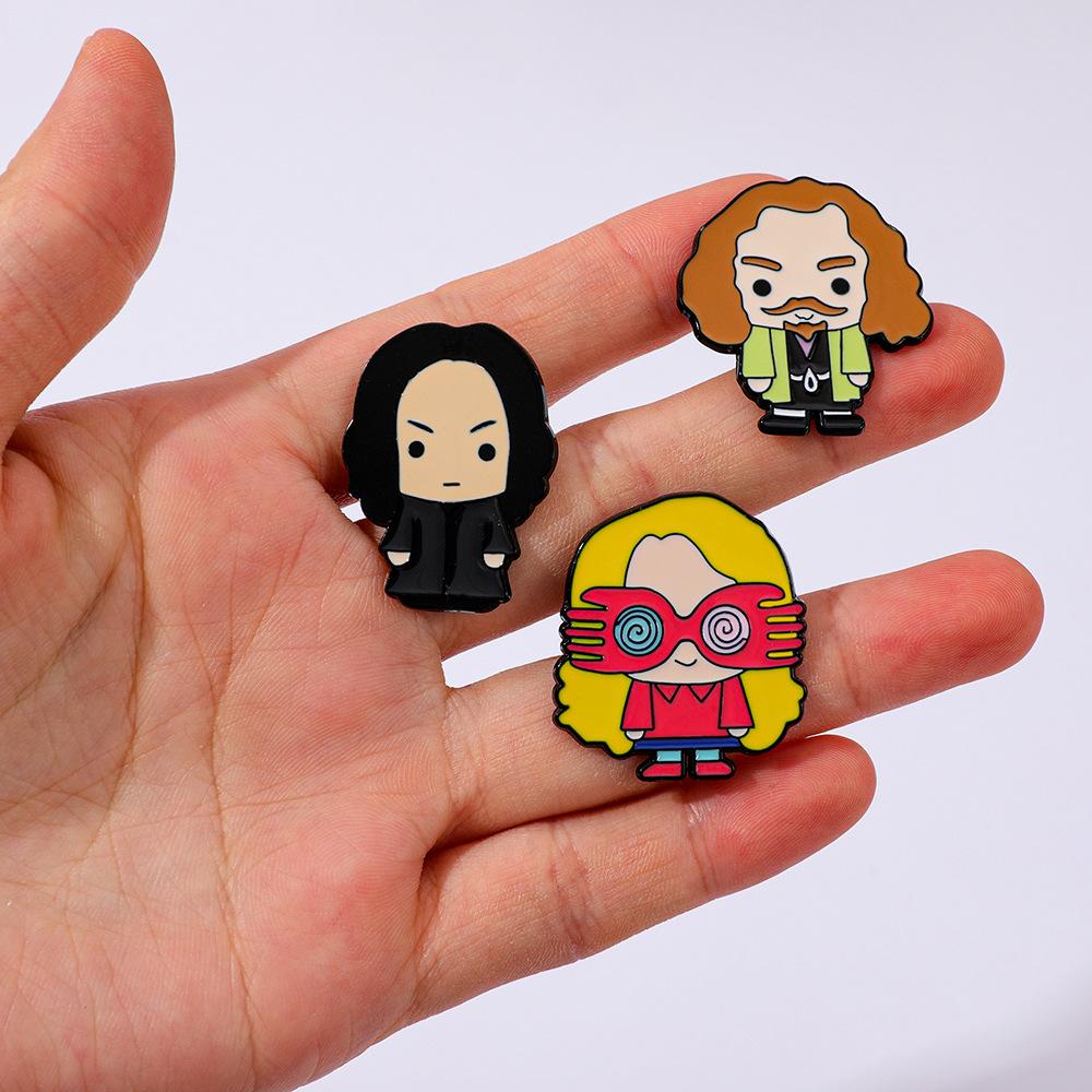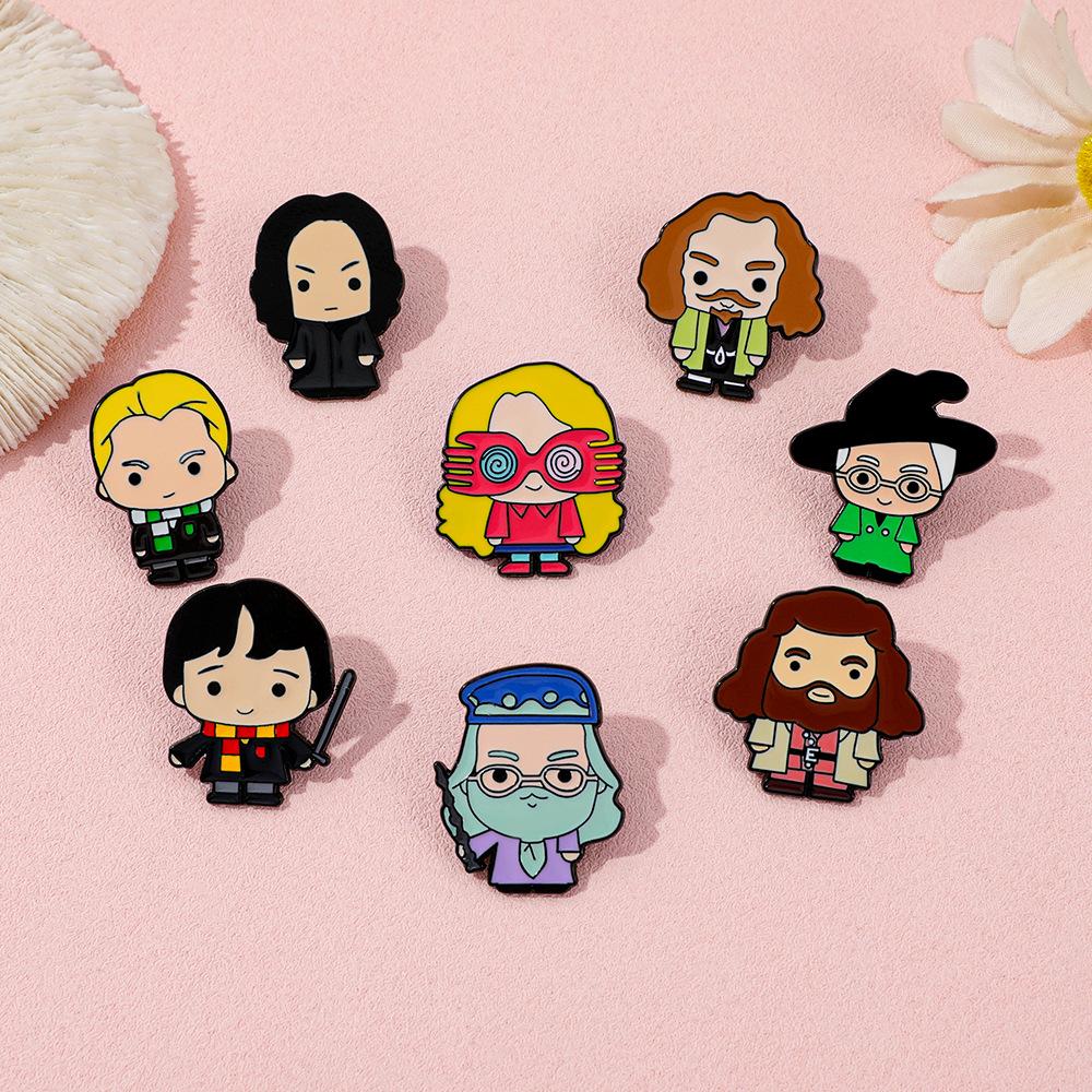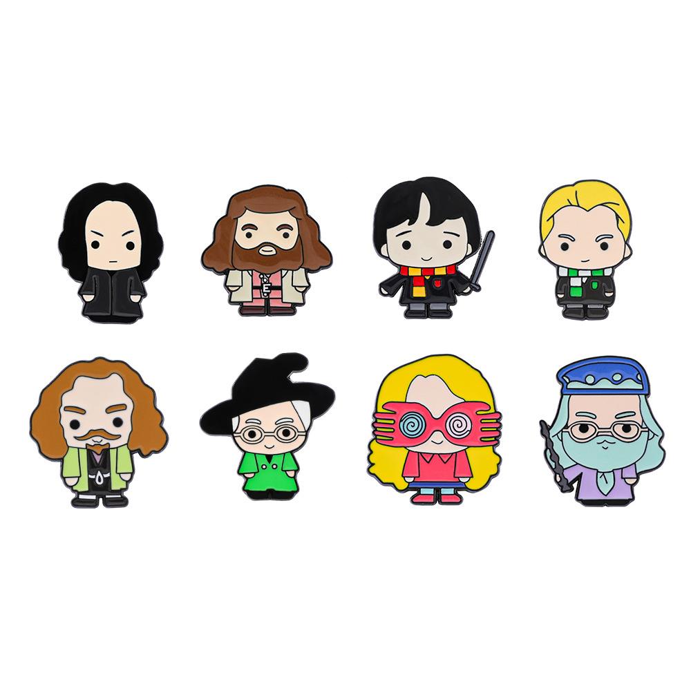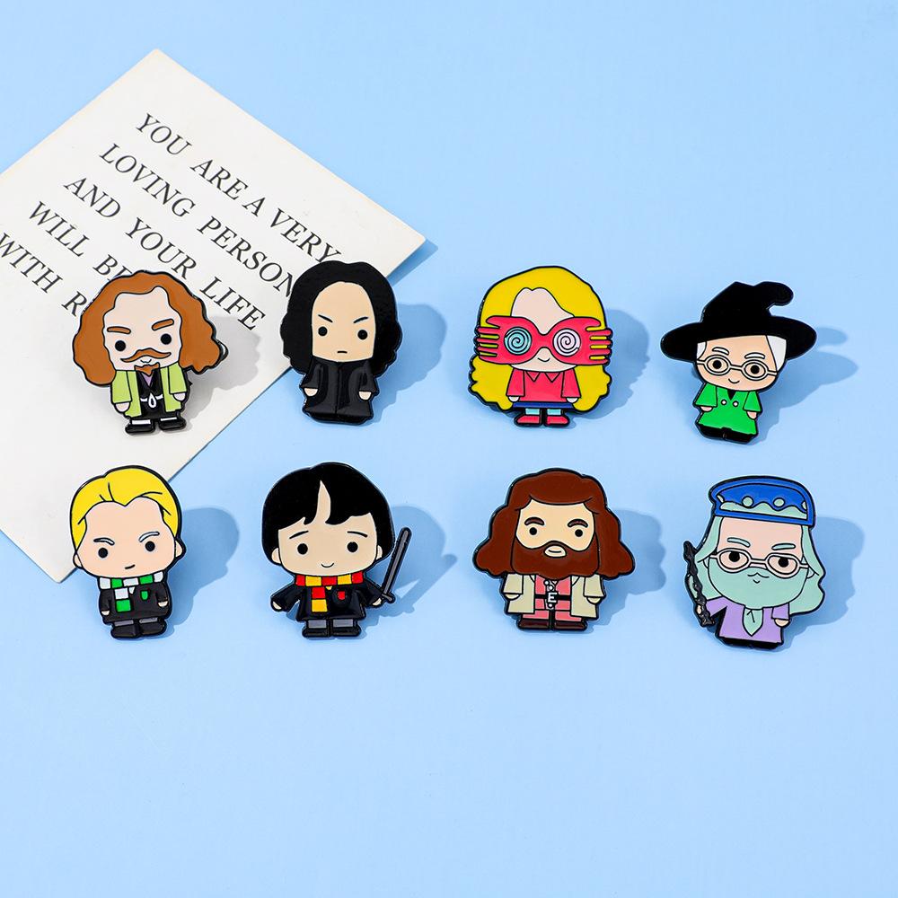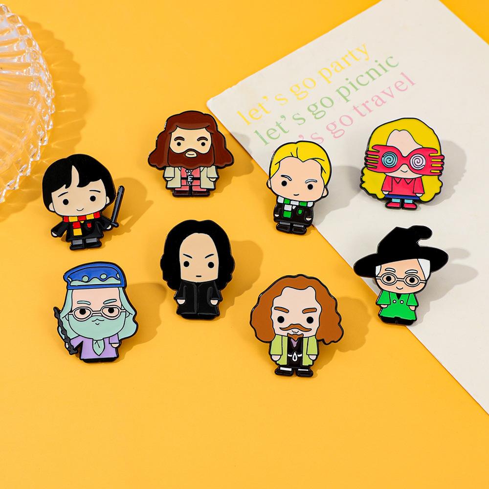 Broche universitario de aleación con forma de gota de aceite, con personajes novedosos, mágicos y creativos de películas y televisión europea y americana