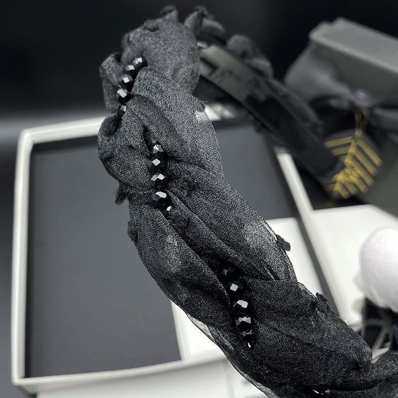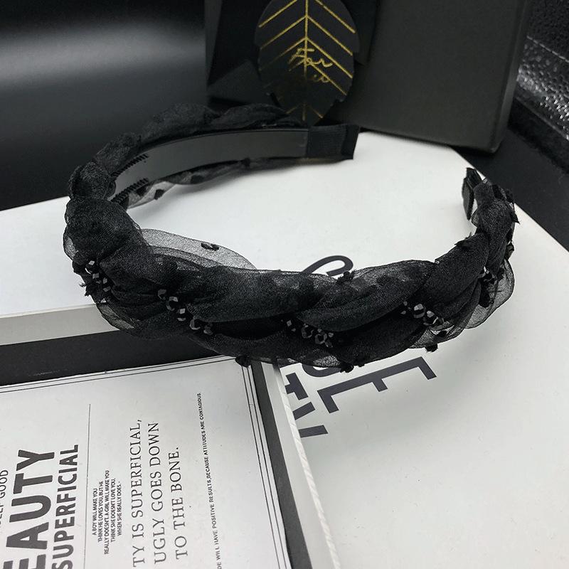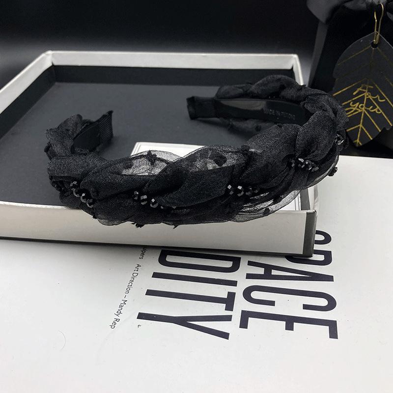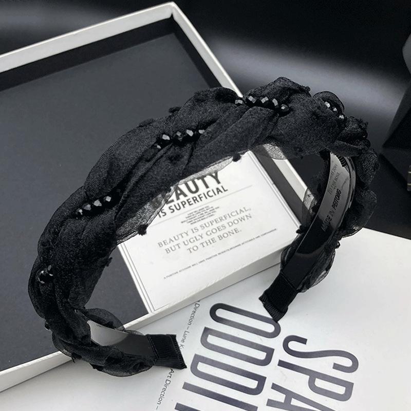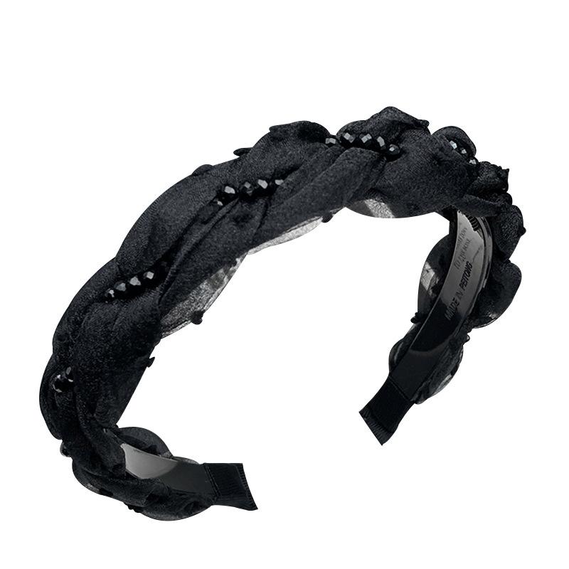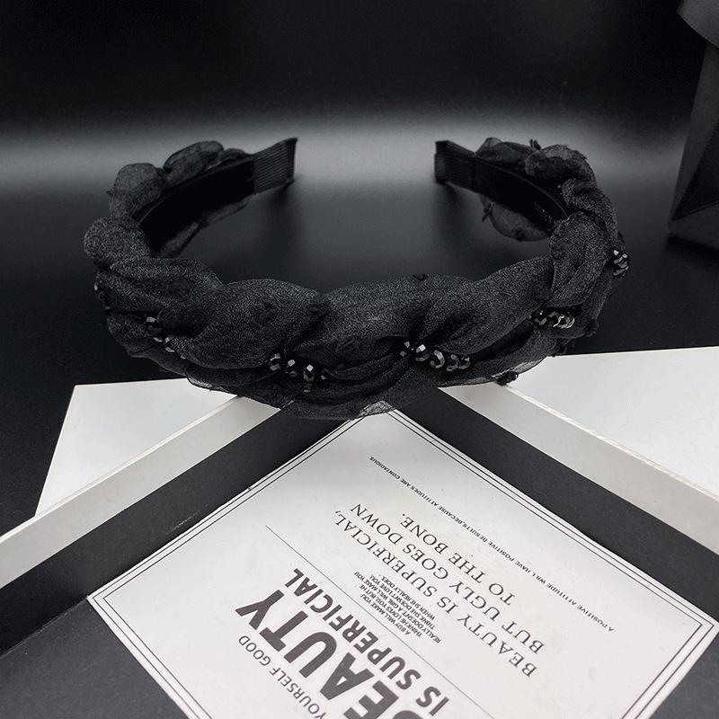 Pinza para el cabello trenzada negra, aro para el cabello para mujer, estilo moderno y elegante, con incrustaciones, para la cabeza, ideal para ir de compras, para planchar el cabello y lavarse la cara.