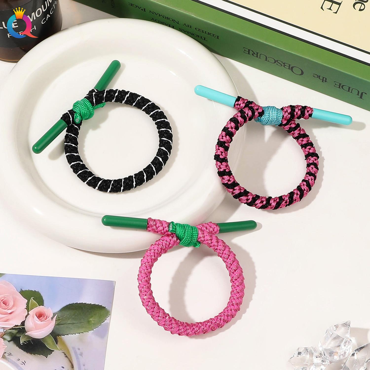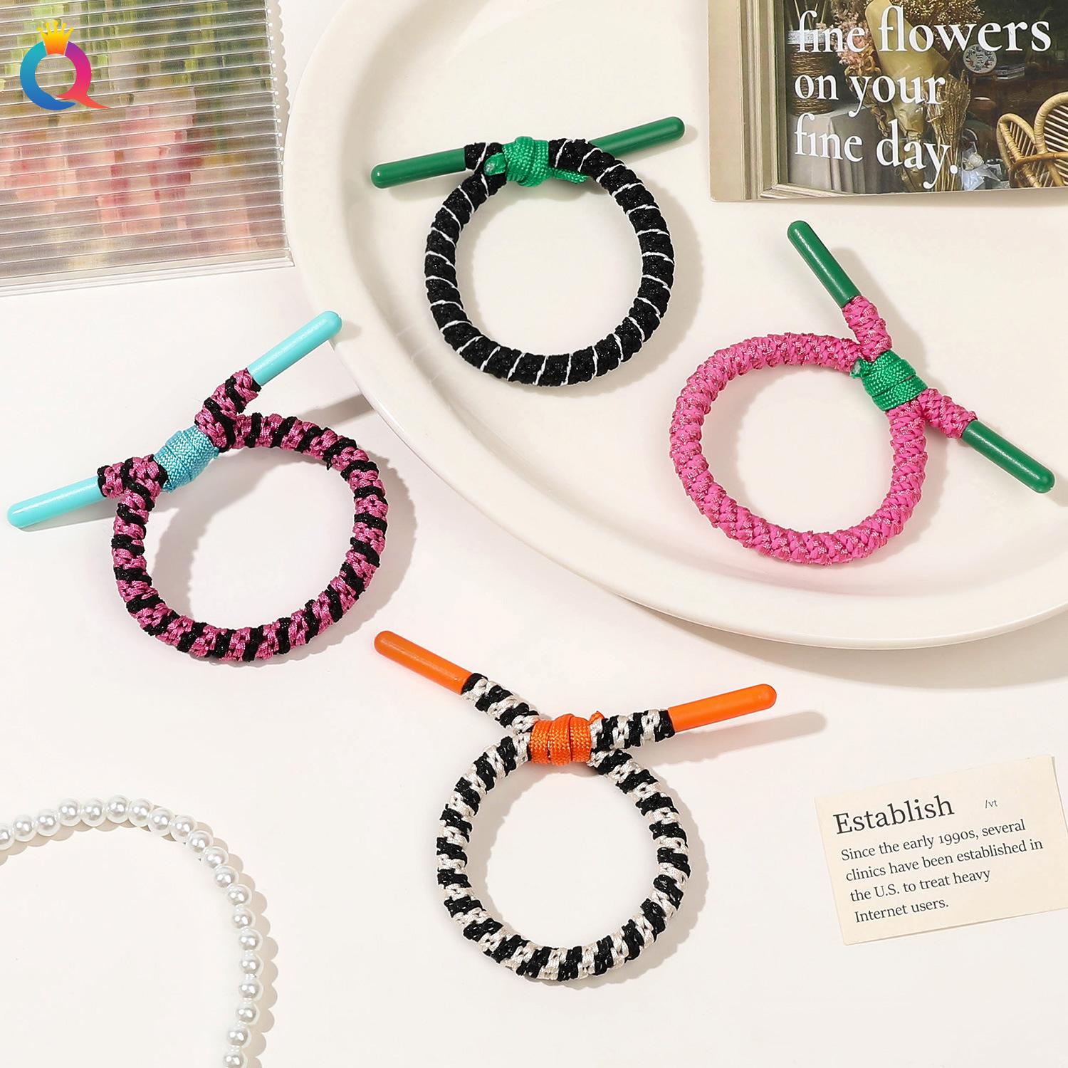 Qiyue, estilo deportivo simple, coleta alta, cuerda para el cabello, anillo para el cabello trenzado colorido, banda de goma para el cabello de alta calidad para niña, venta al por mayor