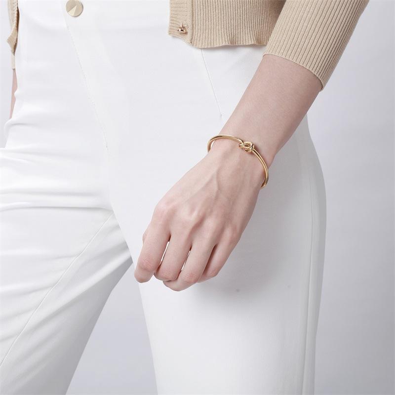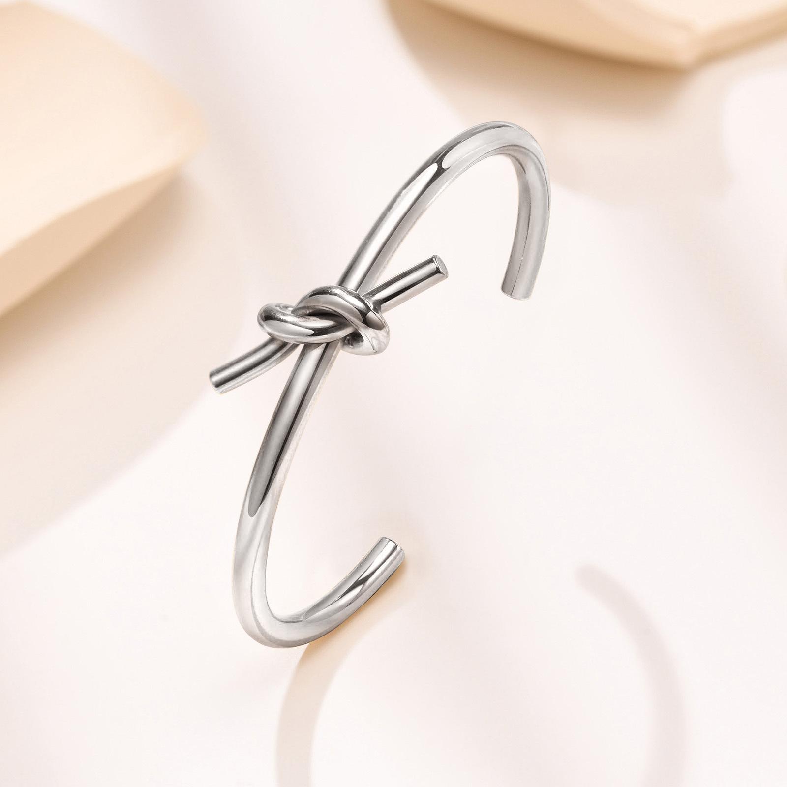 Pulsera abierta anudada de acero inoxidable pulsera de moda para mujer joyería transfronteriza al por mayor estilo europeo y americano pulsera simple