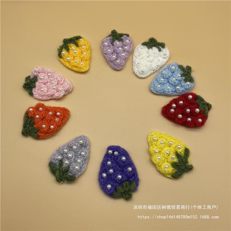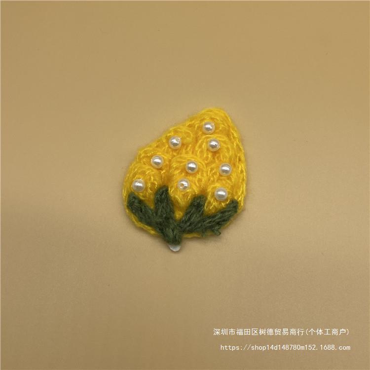 Suéter de Mano Flor de Fresa Calcomanía Crochet Fruta Piña Cuello Flor Tridimensional Parche Ropa Infantil Decoración de vestido