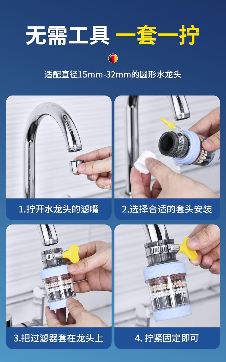 Compra Filtro de grifo a prueba de salpicaduras, artefacto universal de purificación de agua para el hogar, cocina, extensión, dormitorio, accesorios de purificación de agua al por mayor en Joom.pro