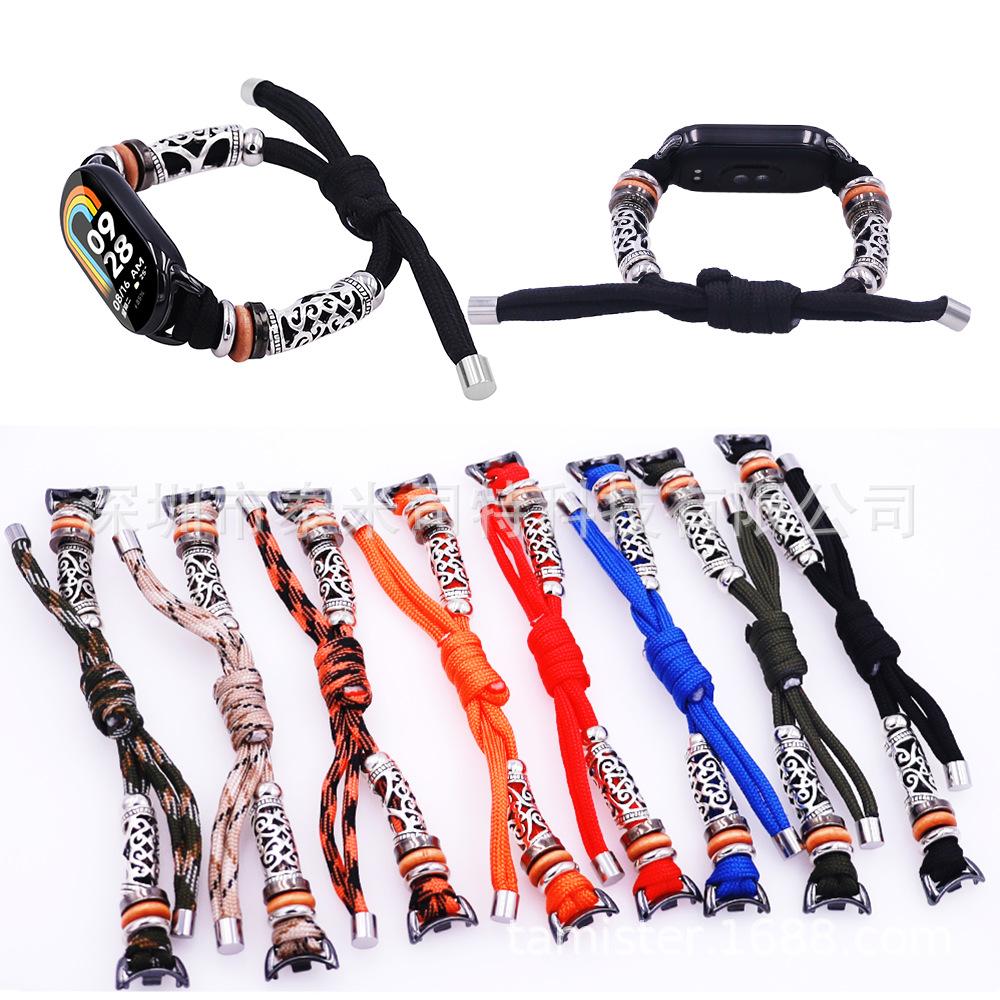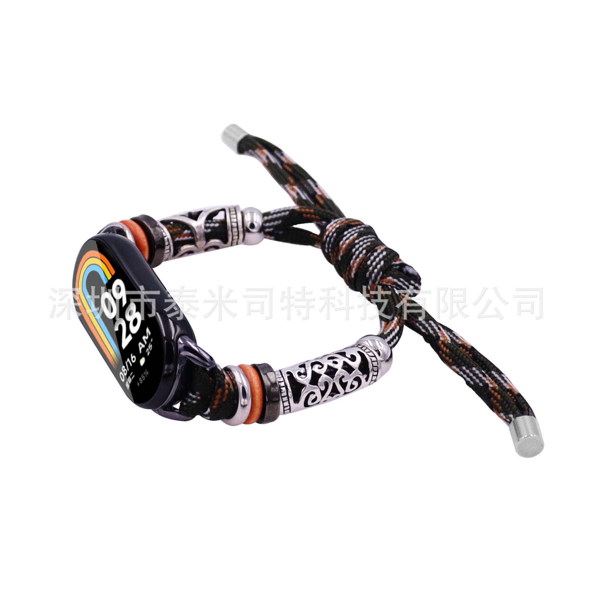 Adecuado para mi pulsera 8 pulsera ajustable de cuerda trenzada hecha a mano con cuentas de plata tibetana