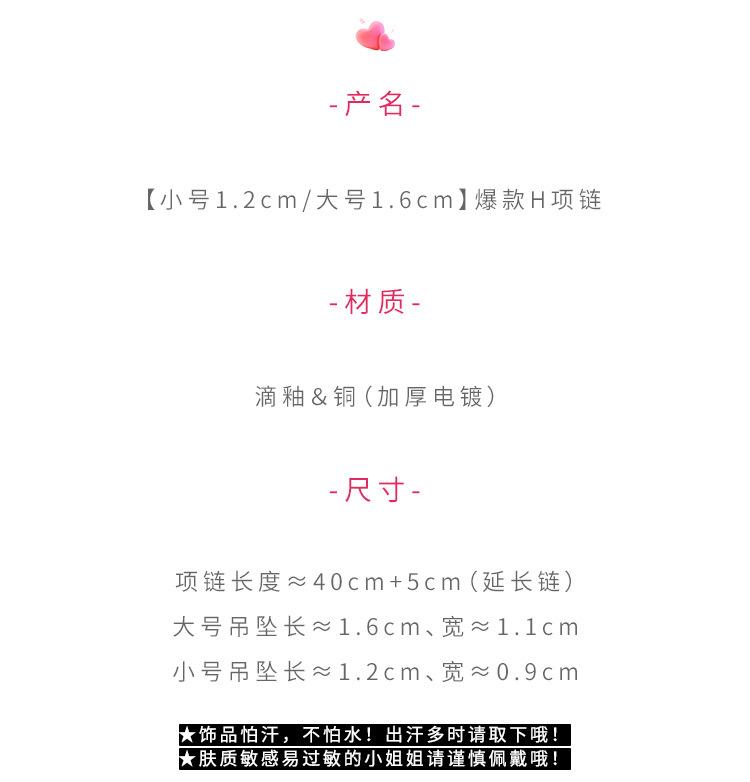 [Small size 1.2cm] Popular H necklace, [Large 1.6cm] Popular H necklace