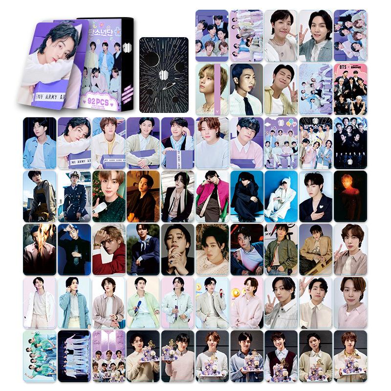 92 tarjetas LOMO BTS, caja láser para colección, ideal para fans, tarjetas fotográficas de alta definición, tarjetas de felicitación, marcapáginas.